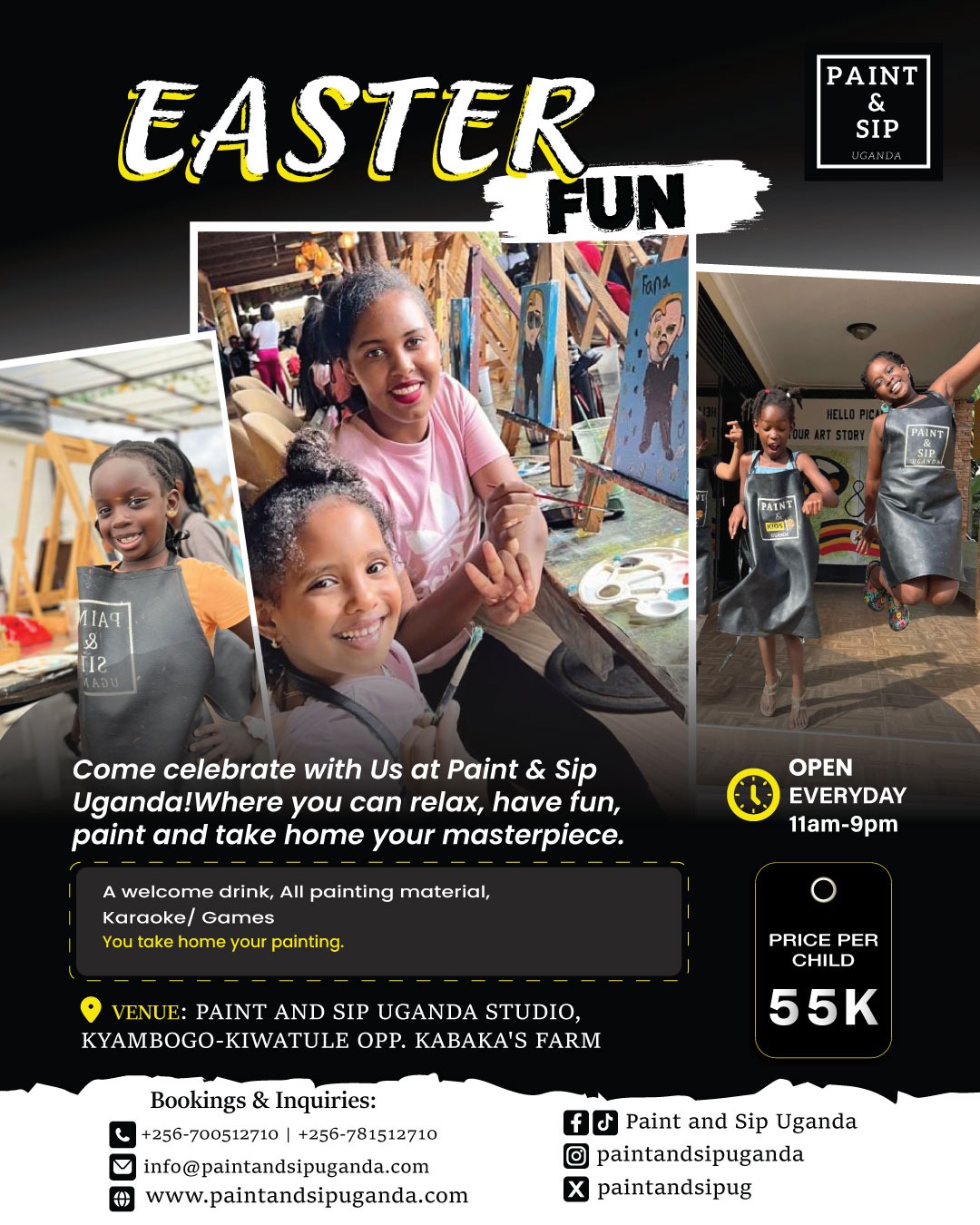 Come celebrate with us at Paint & Sip Uganda where fun meets creativity. Relax, paint your masterpiece, and take home beautiful memories this Easter 🎨