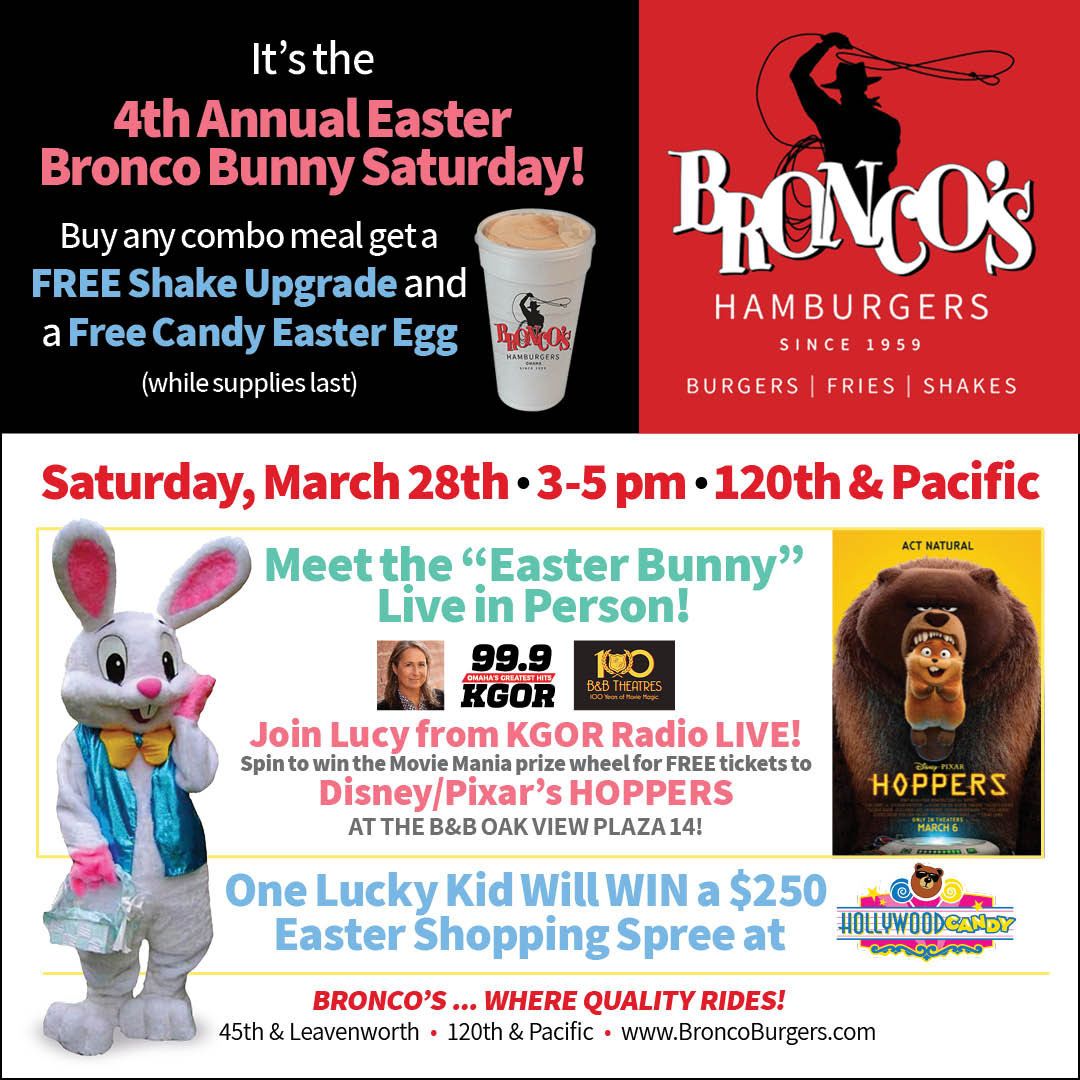🐰🌸 It’s BACK… and bigger than ever! 🌸🐰 Join us for the 4th Annual Easter Bronco Bunny Saturday! 🎉 Saturday, March 28th | 3–5 PM | 120th & Pacific Here’s what’s hoppin’: 🍔 Buyinstagram.com/p/DWcEtq_lamC/Pd9BwA #EasterFun #OmahaEvents #FamilyFun #BroncosBurgers #Easterdu7YLy