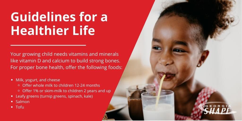 Your growing child needs vitamins and minerals, such as vitamin D and calcium to build strong bones. Here are a few ways to add vitamin D and calcium into your child’s diet. #GeorgiaShape#eatlocalGA
