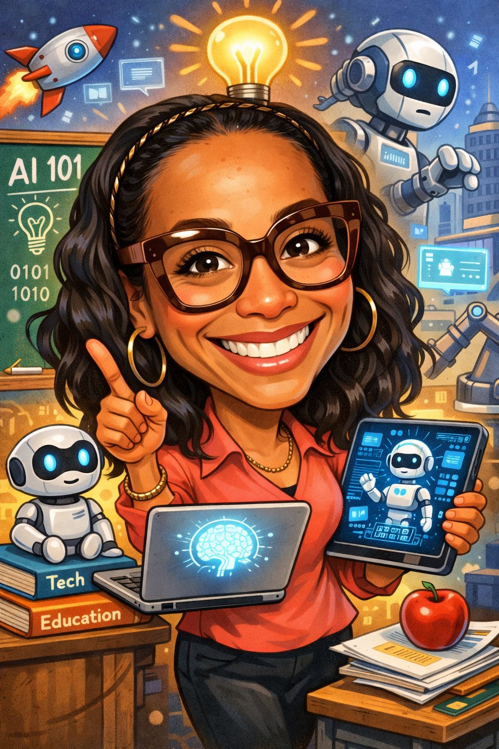 When your AI Agent turns you into a caricature and you realize… you really do live at the intersection of education + innovation 🤖📚Powered by coffee, curiosity, and a whole lot of future-ready thinking🙌🏼