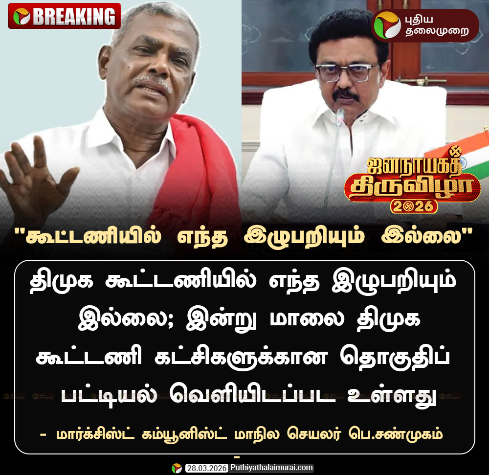 PttvOnlinenews @PttvNewsX · 5h #ElectionwithPT | "கூட்டணியில் எந்த இழுபறியும் இல்லை" #CPM | #Shanmugam | #MKStalin | #TNElections 5 17 111 3.8K