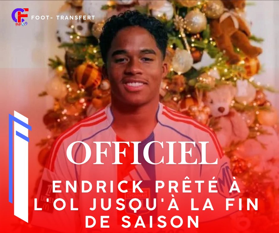 Cfinfo9 @Cfinfo9 · Dec 23, 2025 🚨 Endrick rejoint l’OL jusqu’à la fin de saison ! 🇧🇷⚽ L’attaquant brésilien quitte provisoirement le Real Madrid pour s’engager avec l’Olympique Lyonnais. Il portera le numéro 9. #Endric #OL #Lyon #Transfert #Foot #Football #RealMadrid #Ligue1 #Brazil #Mercato #XFoot #Ac4FH 258