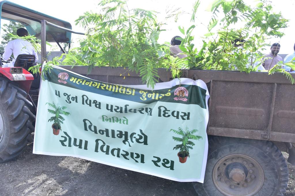 આજે જુનાગઢ મહાનગર પાલિકા દ્વારા વિશ્વ પર્યાવરણ દિન નિમિત્તે વૃક્ષારોપણ નું અને વિના મૂલ્યે રોપા વિતરણ નું આયોજન