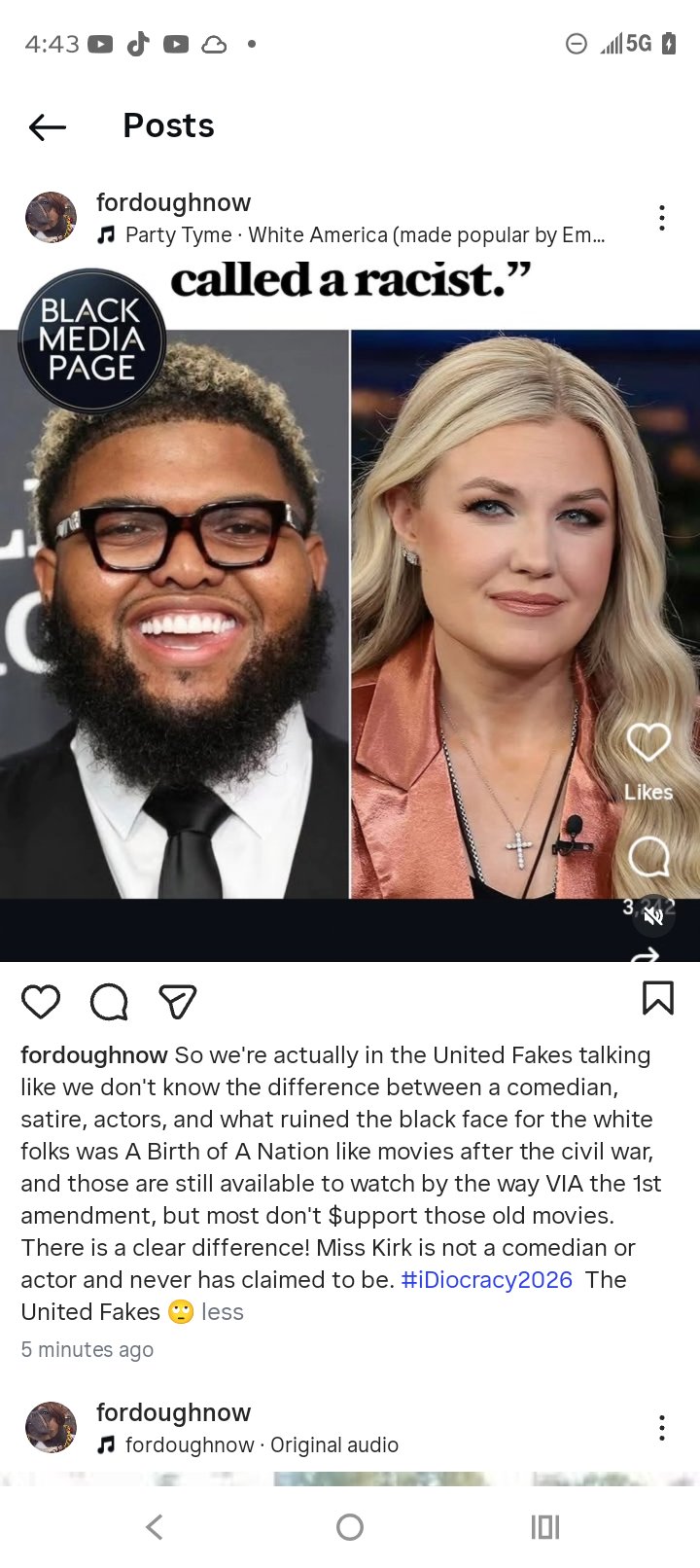 The United Fakes, like we don't know the difference between, comedian, satire, actors. What ruined the black face for the white folks was A Birth of A Nation like movies after the civil war. Still available to watch by the way VIA the 1st amendment. #druski #ericakirk #whiteface