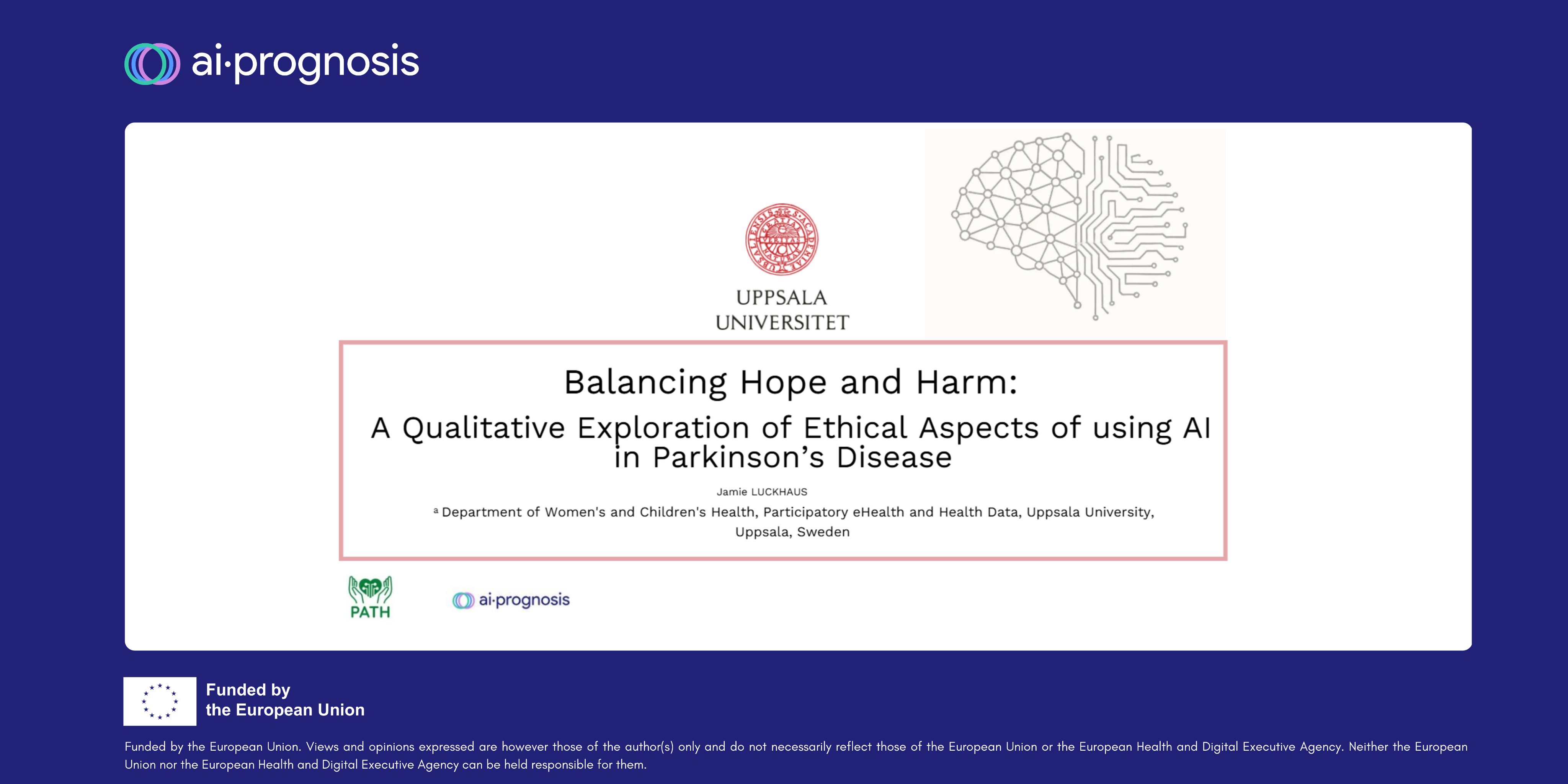 📌 @jamielinnea presented a study during a Health Data Sweden webinar on the ethical considerations of predictive AI in Parkinson’s disease from the perspective of the @aiprognosis patient panel.