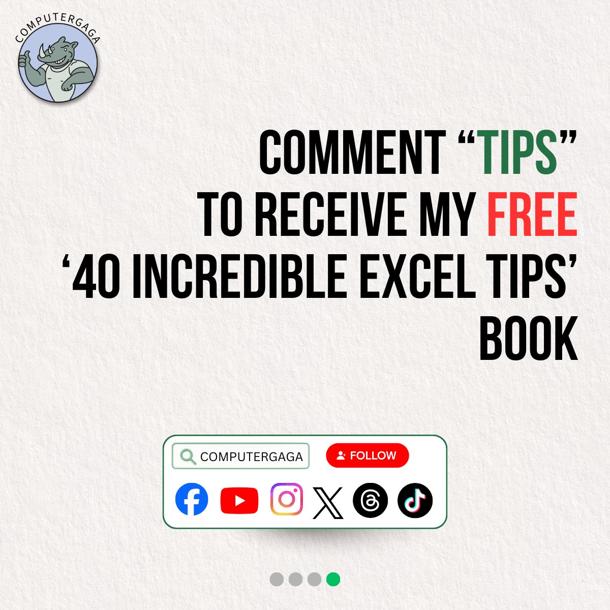 Comment “TIPS” to get a FREE Excel tips book