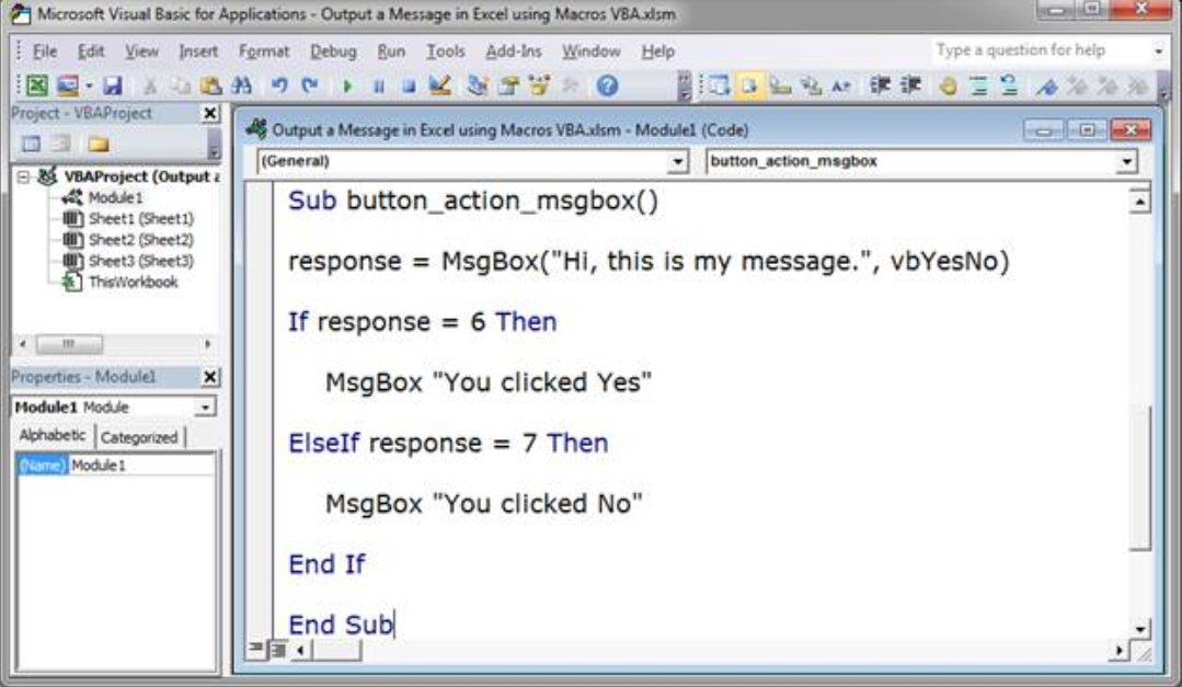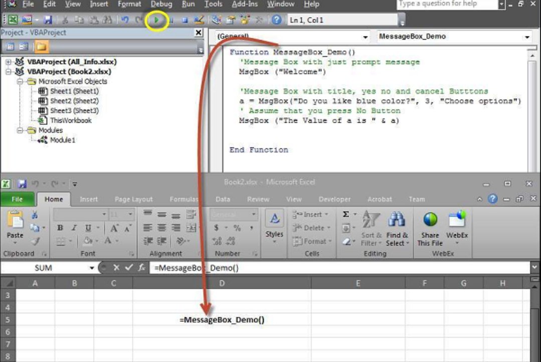 MsgBox "Hello Excel!"