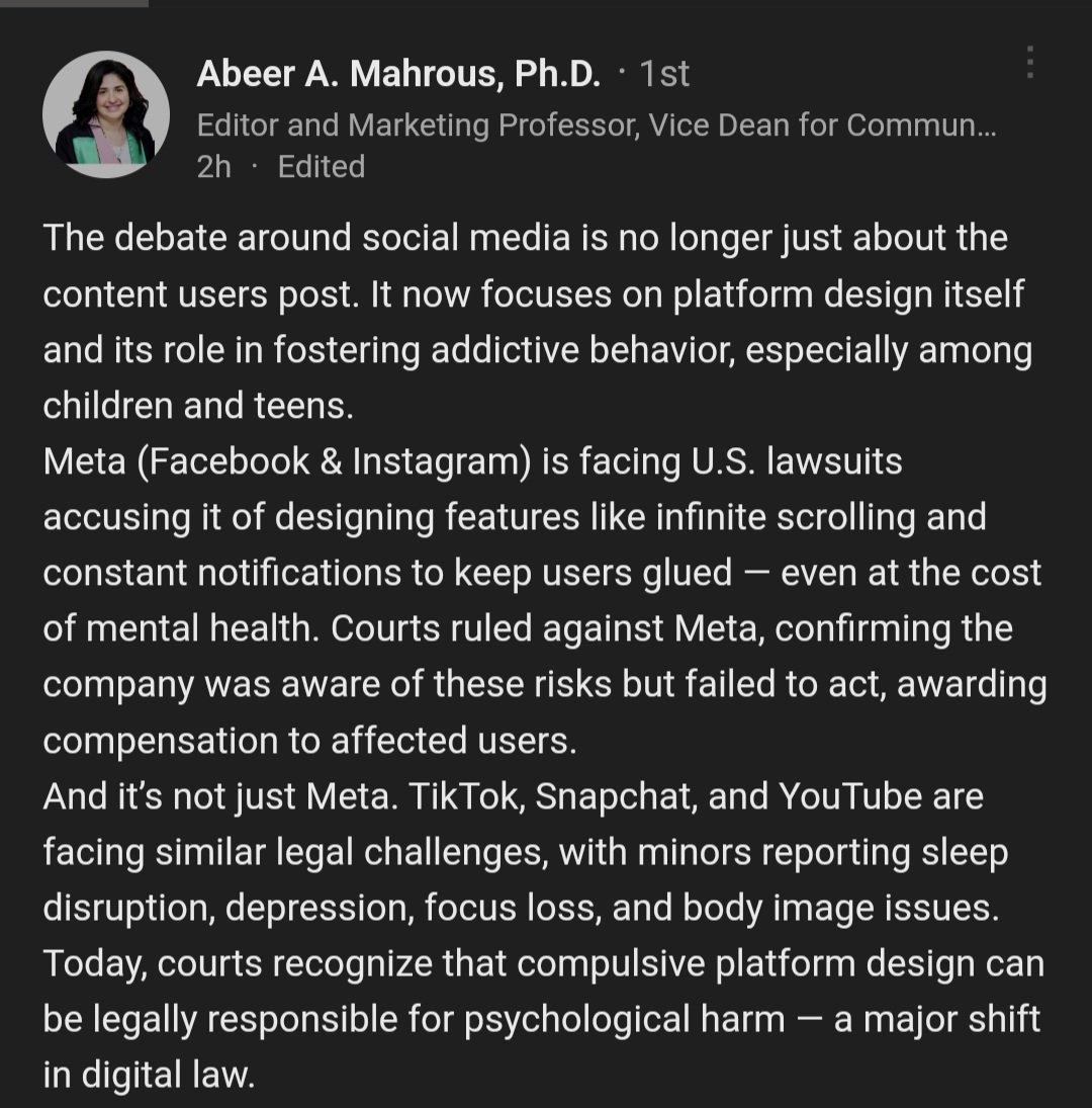 Insightful words from my Advertising & Social Media college professor Dr. Abeer.