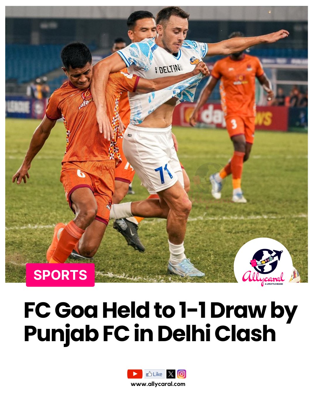 From yespunjab.comइंडियन सुपर लीग (ISL) 2025-26 के एक मुकाबले में पंजाब एफसी और गोवा एफसी की टीमों का मैच बराबरी पर खत्म हुआ।नई दिल्ली के जवाहरलाल नेहरू मैदान में हुए इस