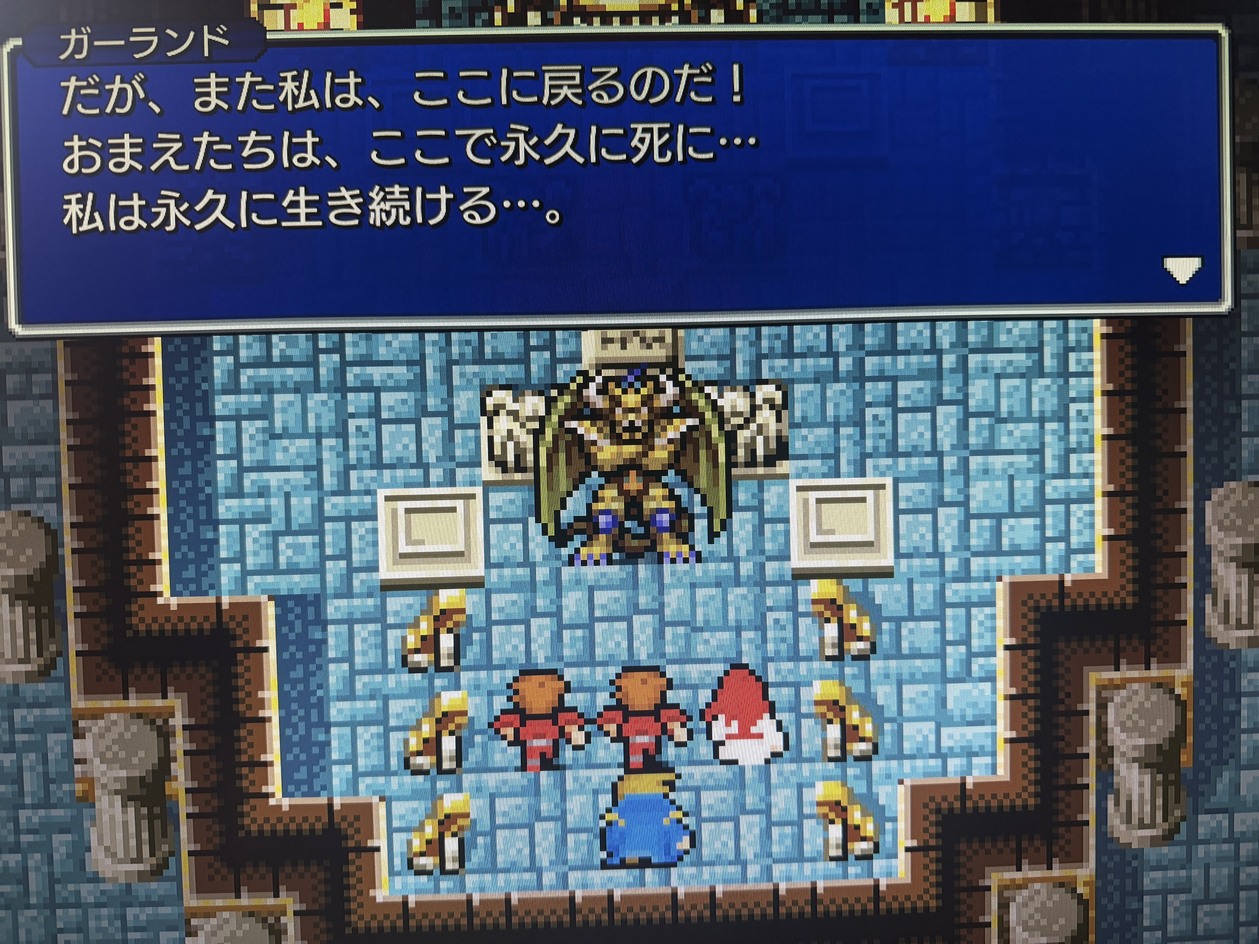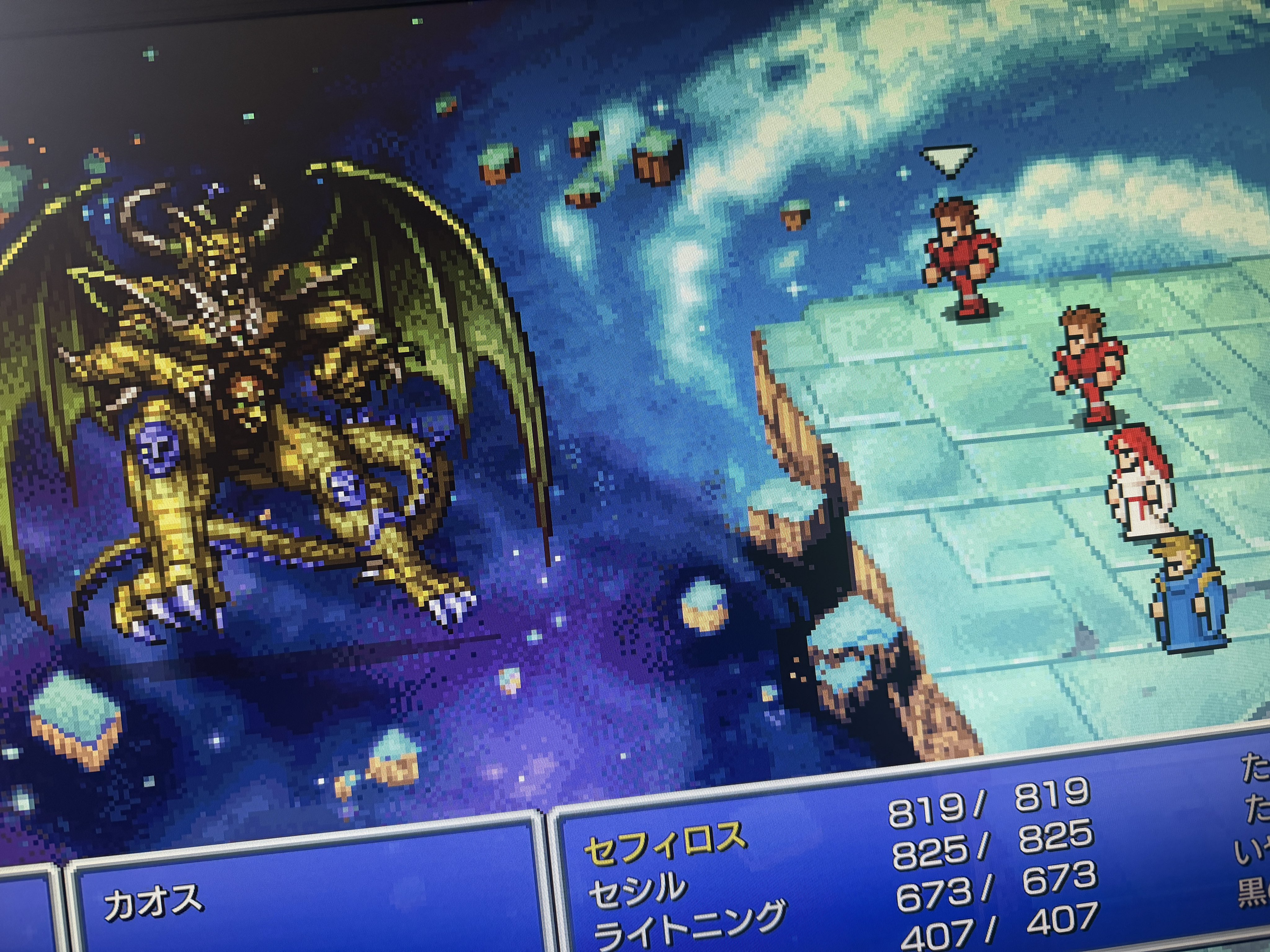 レベル上げして再戦5回目でようやく倒したラスボスだけが別格に強かった…!!ドット絵の4人の光の戦士たちよくやった😌