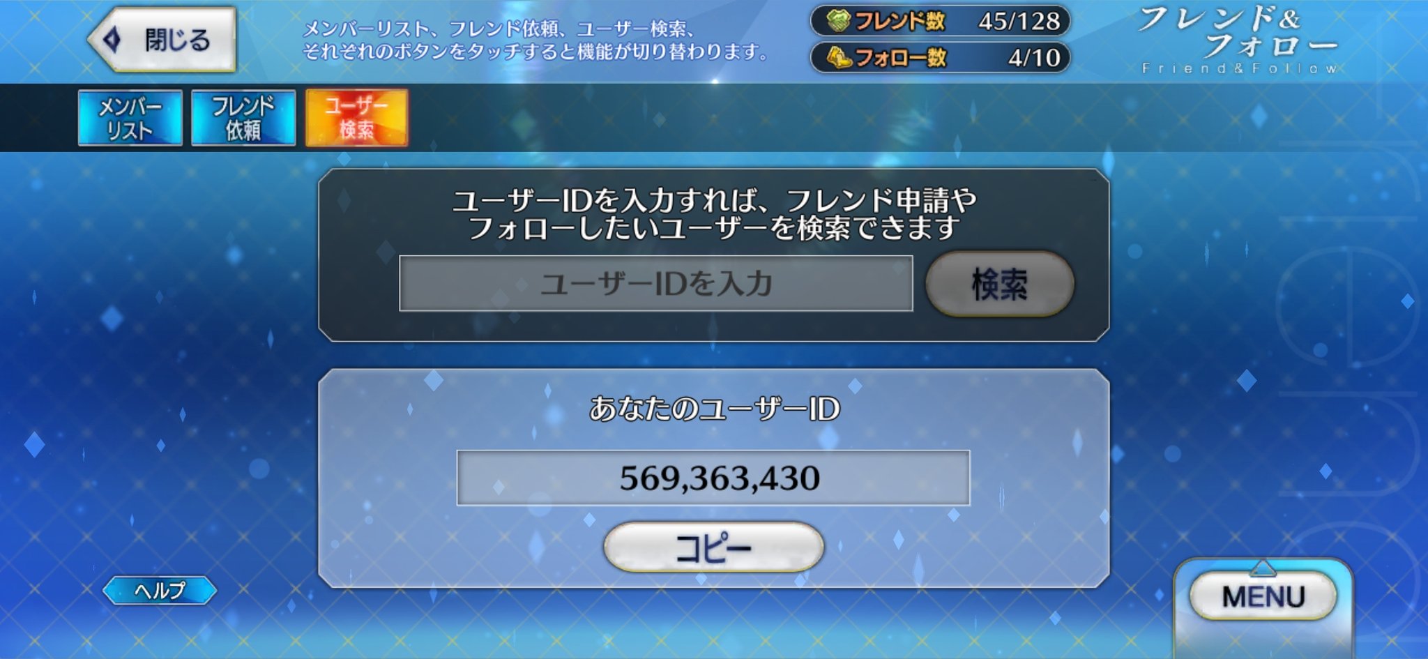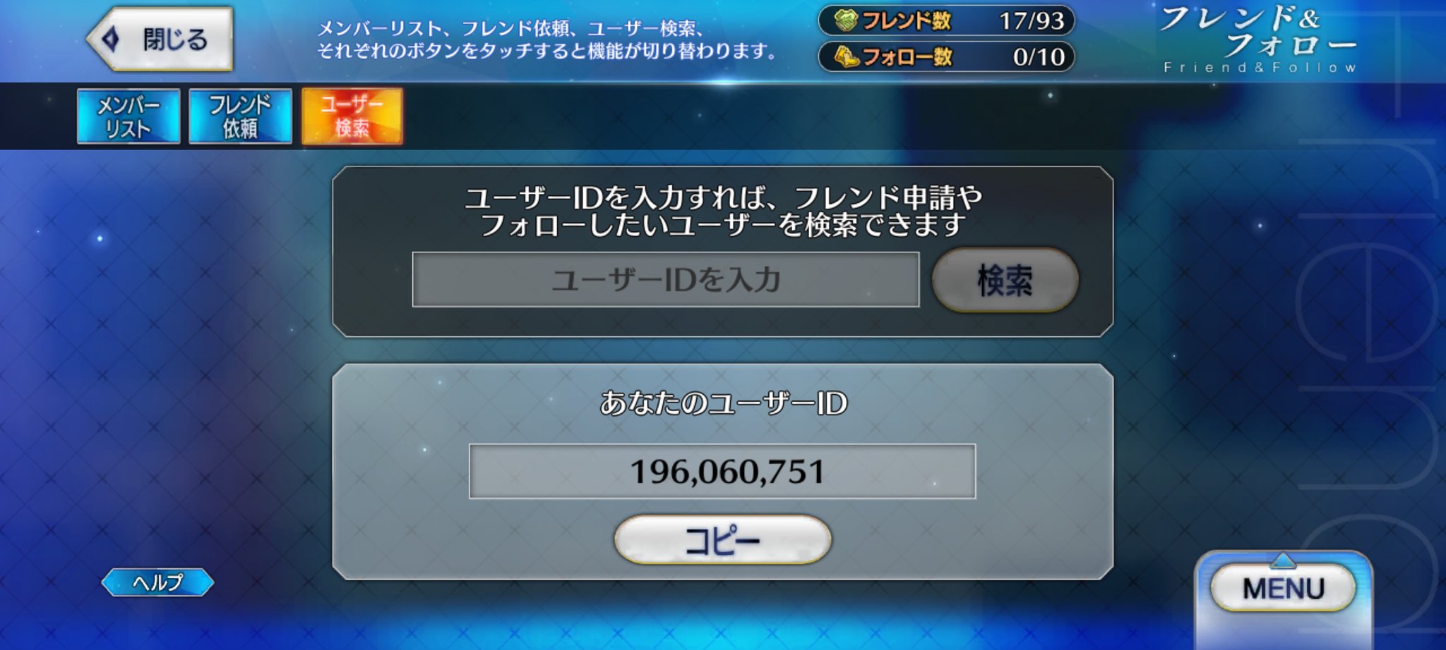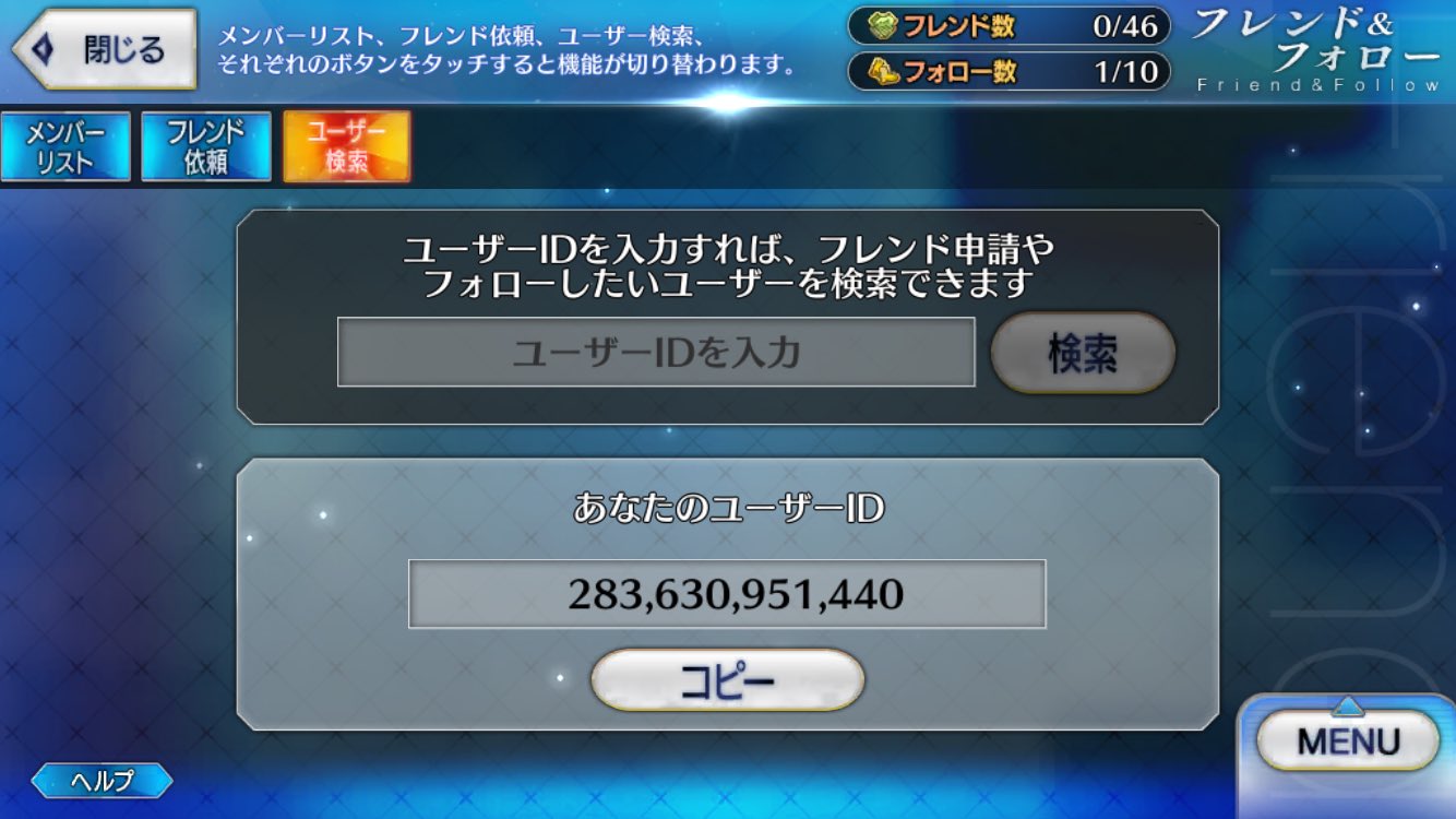 きのここっぺ@5月まで卓入れない @kinokoko2525 · 1d #FGOフレンド募集 最近よく遊んでるのでちょっと募集 鯖全然持ってない初心者です(現在下総国) サポート沢山貸して沢山助けてくれる人を募集しています。同じ初心者の方も歓迎です🙆♀️ 間違い防止のためフレンド申請の際はこちらにアカウント名をリプライください よろしくお願いします 196,060,751X 2 9 392