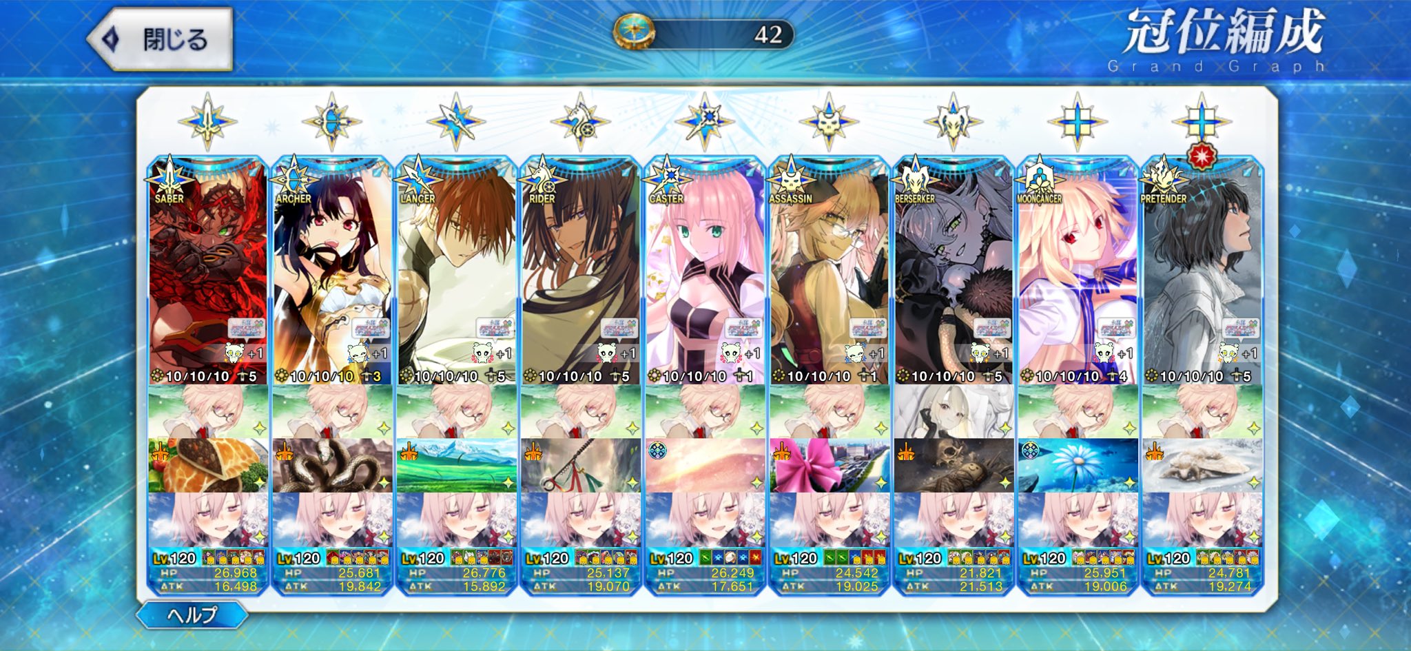 MissingCat @MissingCat_96 · 17h まぁ、クラスコに限らずスキルマについては戴冠戦のおかげで、今年中には上げ終わるので、さほど気にしてないですが... #FGO #FGO好きと繋がりたい #FGO好きさんと繋がりたい 1 3 372