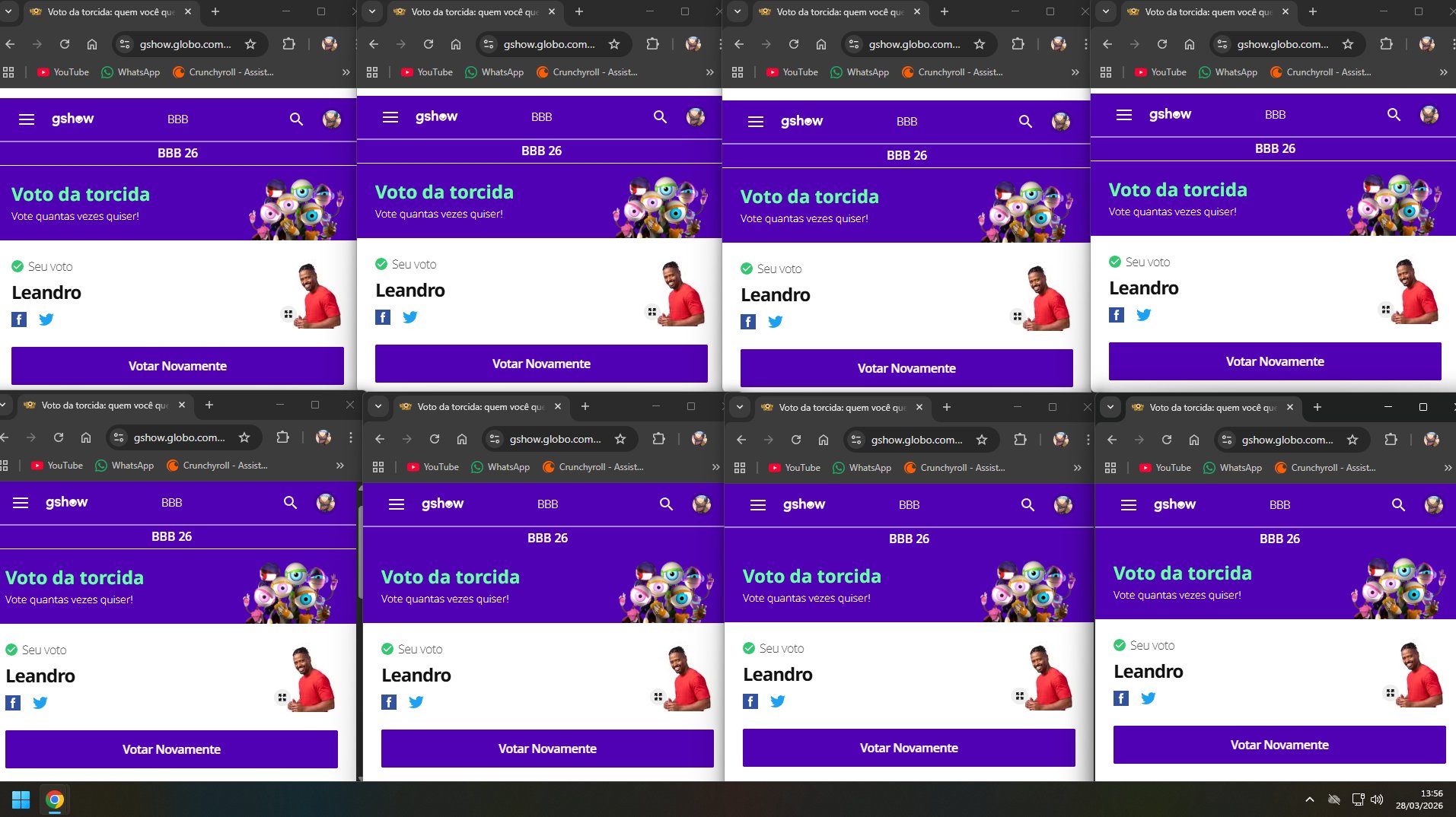 @Stella445077381 @MundinhoCowboy Eu tbm moro fora do Brasil. Mas estou votando sem vpn, no voto de torcida. O voto unico ñ da mesmo. #foraleandro
