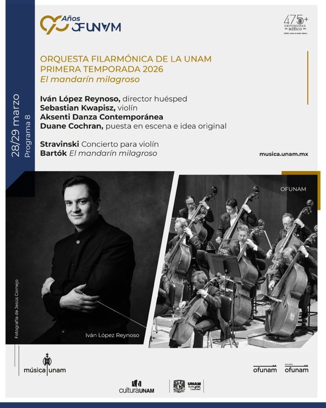 #FelizFindeSemana para los amantes de la música que este domingo 29 de marzo podrán disfrutar del concierto de la @OFUNAM que fusiona música y danza en la puesta “El mandarín milagroso” con @aksentidanza en ls Sala Nezahualcóyotl #PasesDobles solo RT y Nombre