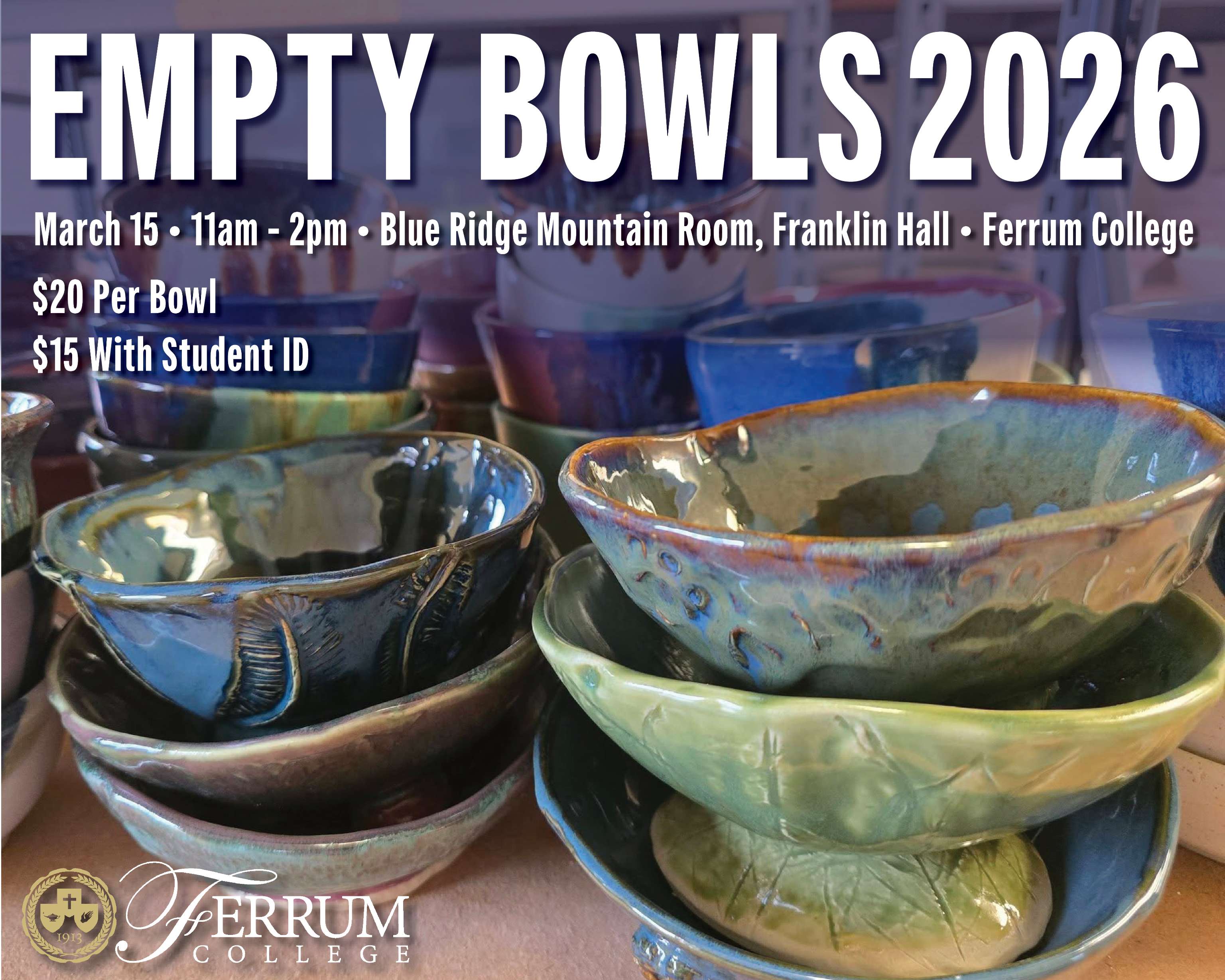 For a $20 donation or $15 with a student ID, choose from 500+ handmade bowls, enjoy a delicious bowl of soup, and take your bowl home as a reminder of the difference you’re making.