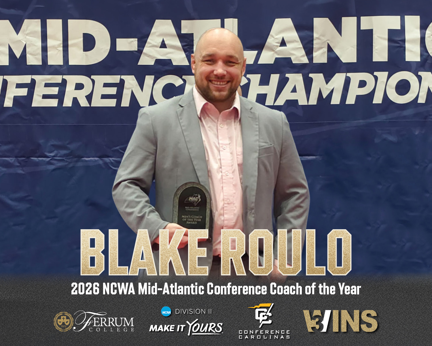 Ferrum College Head Wrestling Coach Blake Roulo has been named Mid-Atlantic Conference Coach of the Year after leading the Ferrum College Panthers to an outstanding performance at the conference championships.