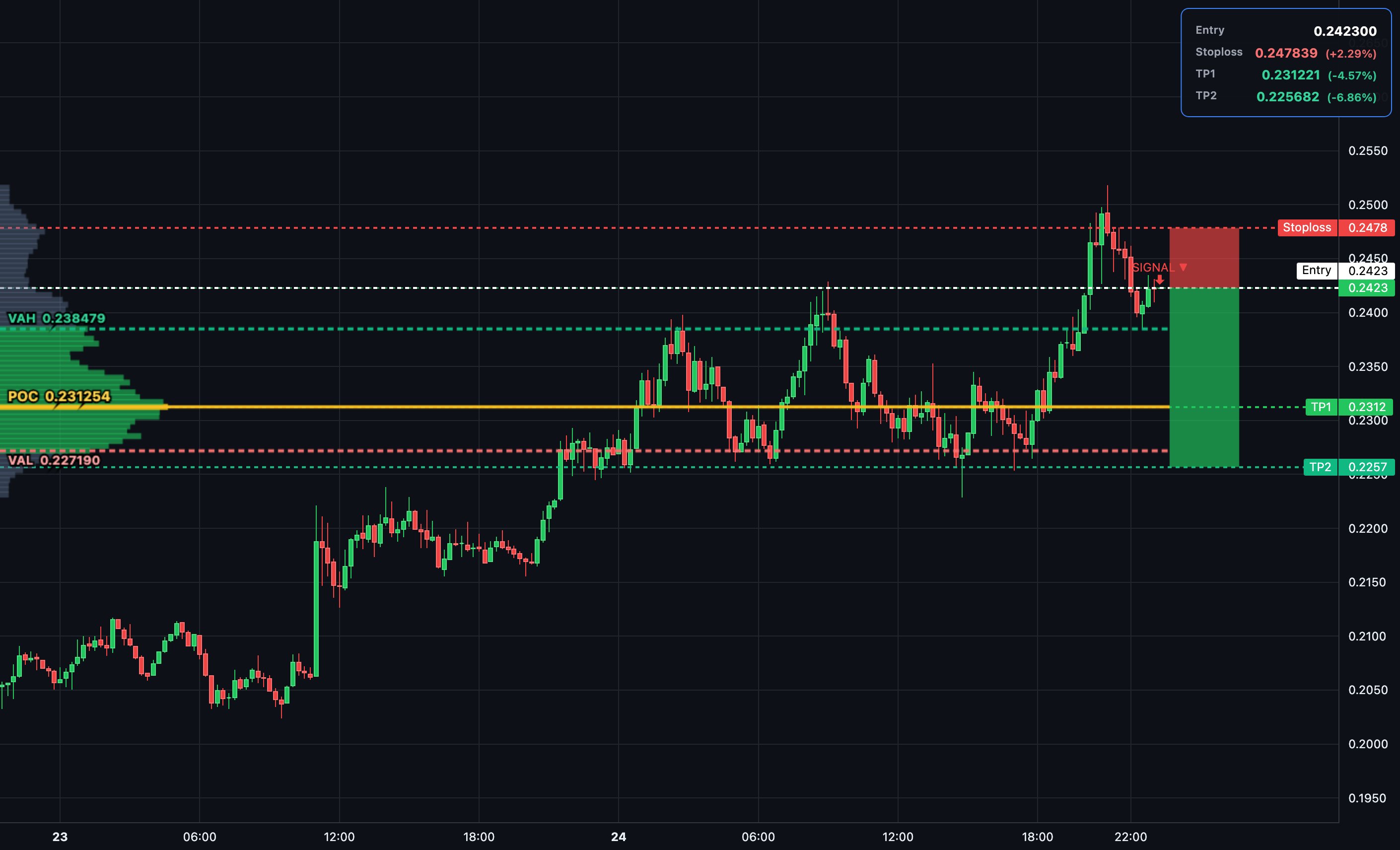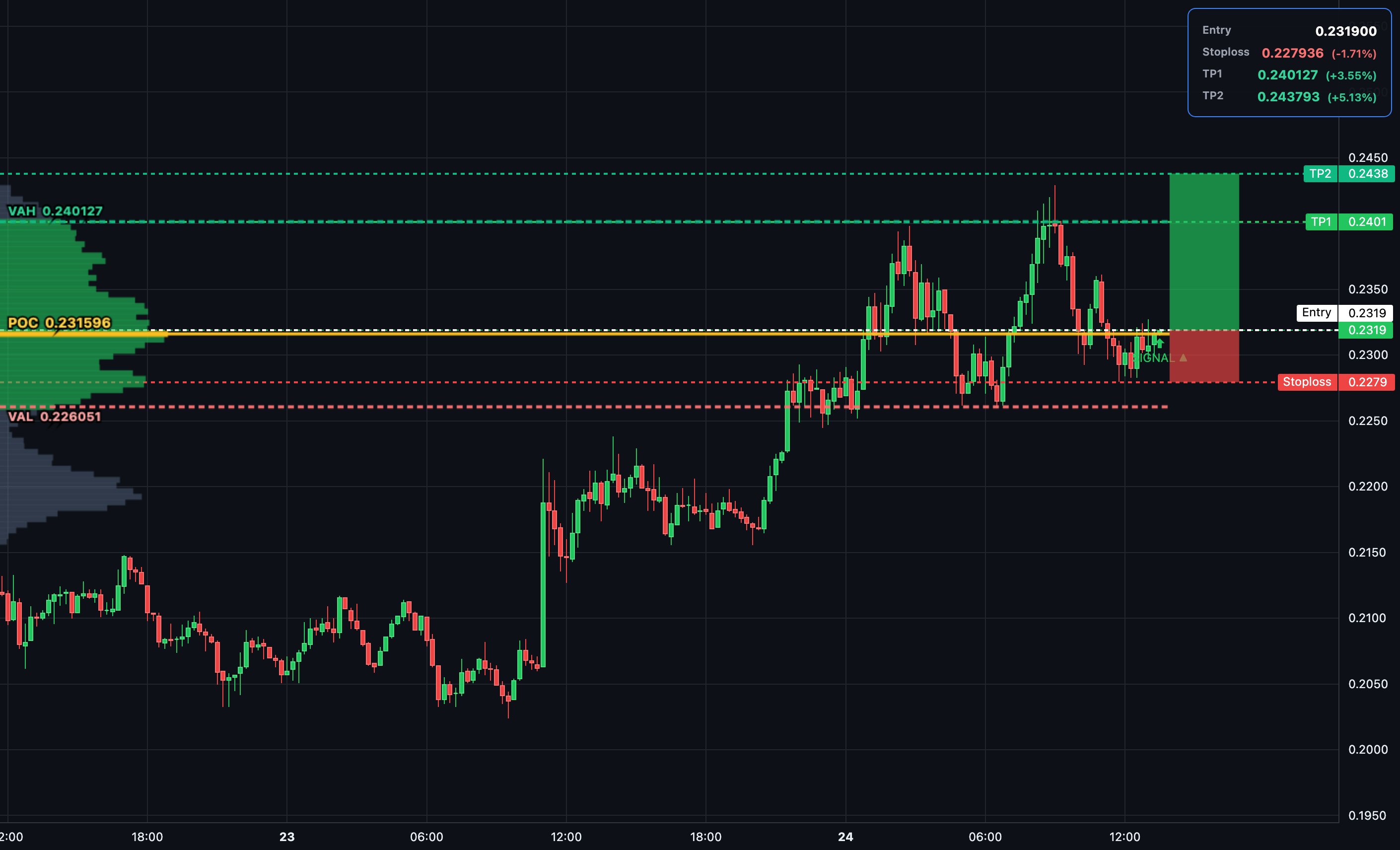$FET 15m long setup: Entry at POC 0.2315 after bullish delta divergence—price falling while delta rises shows buyers absorbing supply. Target VAH 0.2401 & beyond to 0.2438. SL just below VAL for tight risk control. #FetchAI#AI#Crypto#Trading#Altcoins