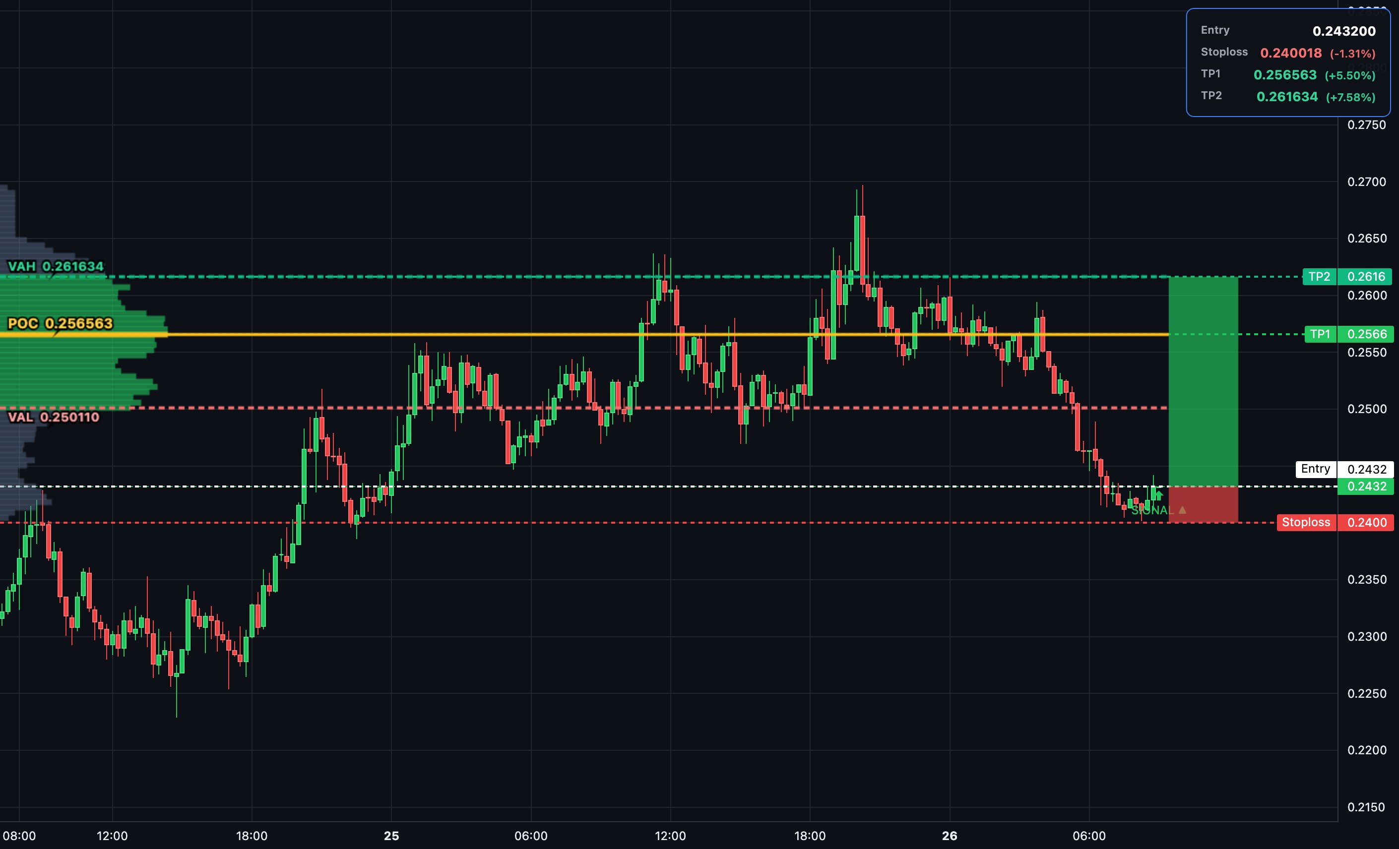 $FET testing the lower Value Area near 0.2431 after a strong auction rotation higher. Bullish delta divergence signals absorption at VAL support. Targeting POC 0.2565 and VAH 0.2616 for high R:R entries. #FetchAI#AI#Crypto#Trading#Altcoins