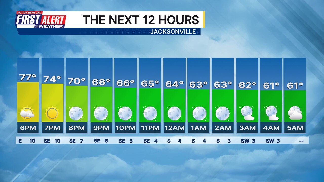 Garrett Bedenbaugh @wxgarrett · 1d Morning! Here is how the next 12 hours in Jacksonville will shape up. #FirstAlertWX wjaxweatherapp.com 83