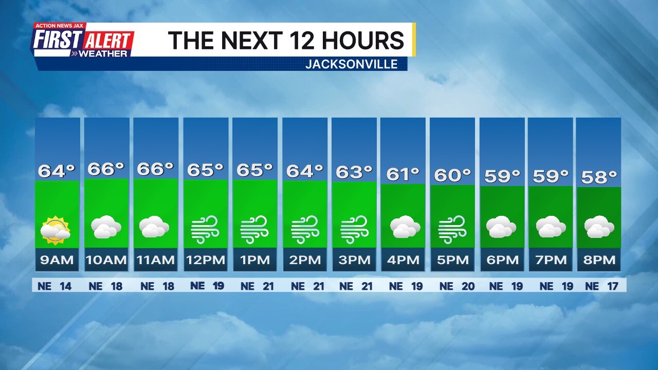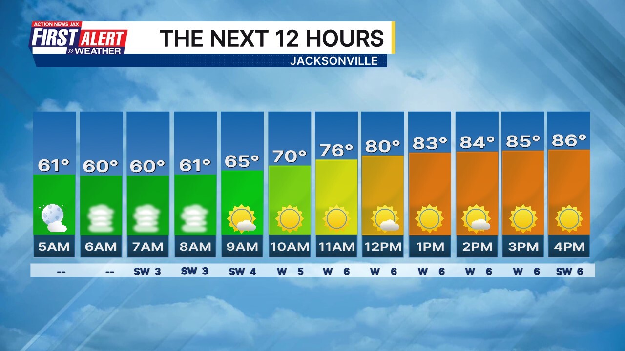 Garrett Bedenbaugh @wxgarrett · 5h Morning! Here is how the next 12 hours in Jacksonville will shape up. #FirstAlertWX wjaxweatherapp.com 91