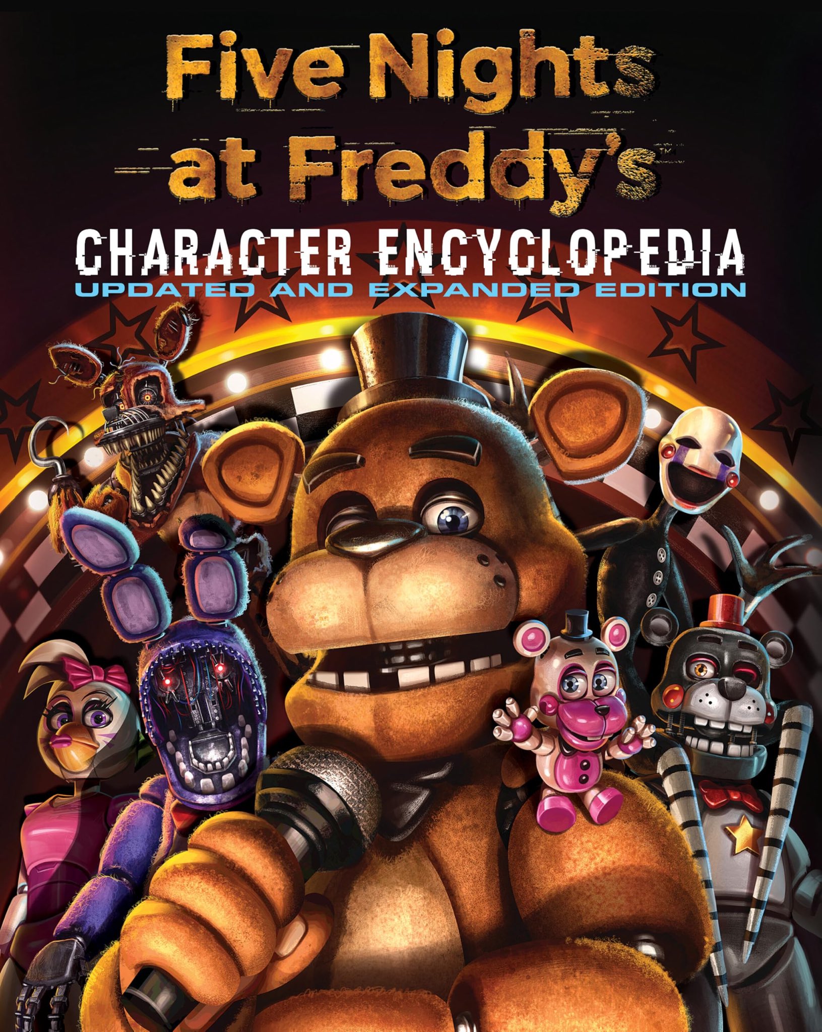 The official cover for the 'FIVE NIGHTS AT FREDDY'S: CHARACTER ENCYCLOPEDIA, UPDATED AND EXPANDED EDITION' has been revealed.