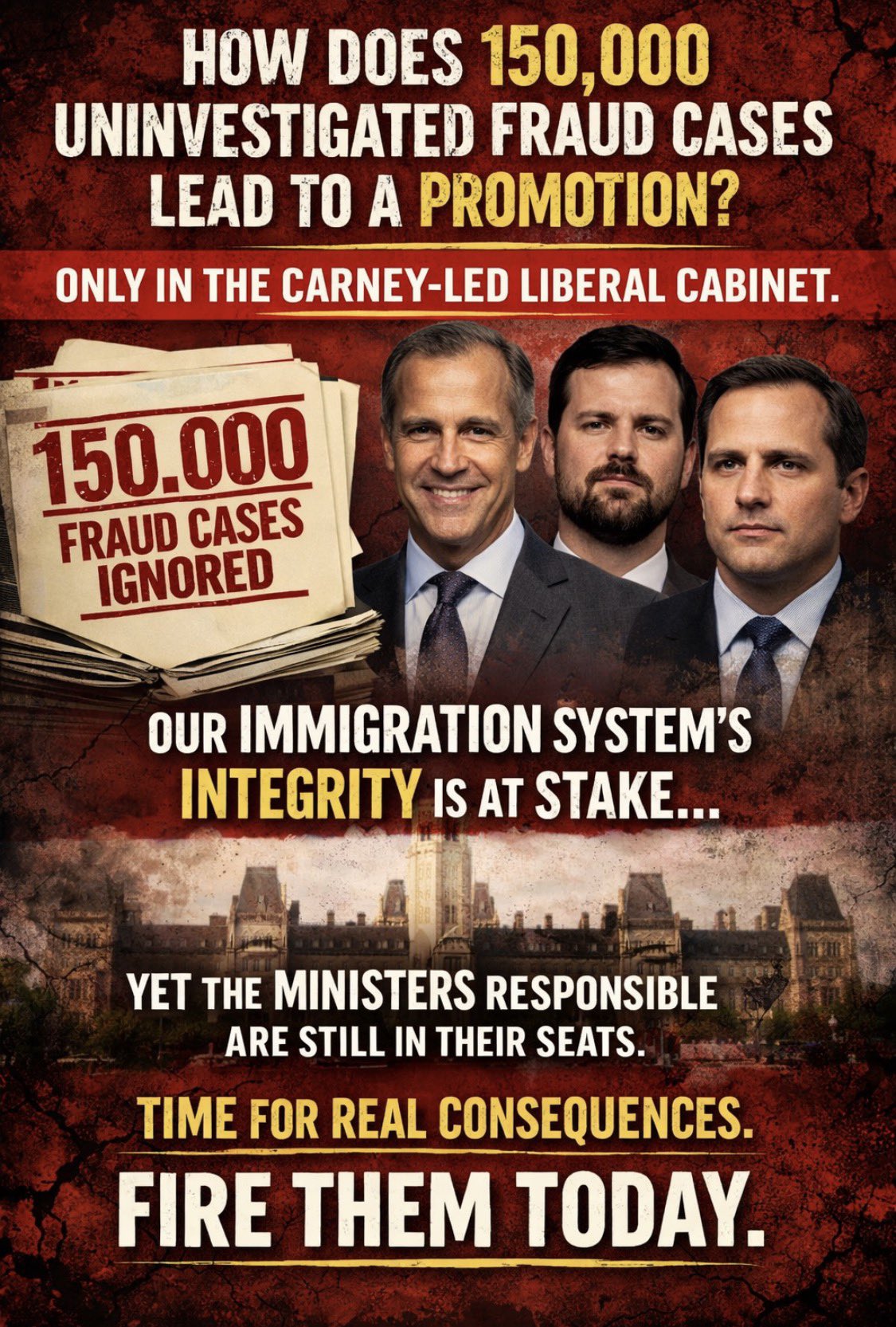 @PierrePoilievre 150,000 suspected fraud cases were swept under the rug by 3 Liberal ministers. They shouldn't be in the cabinet—they should be held accountable.