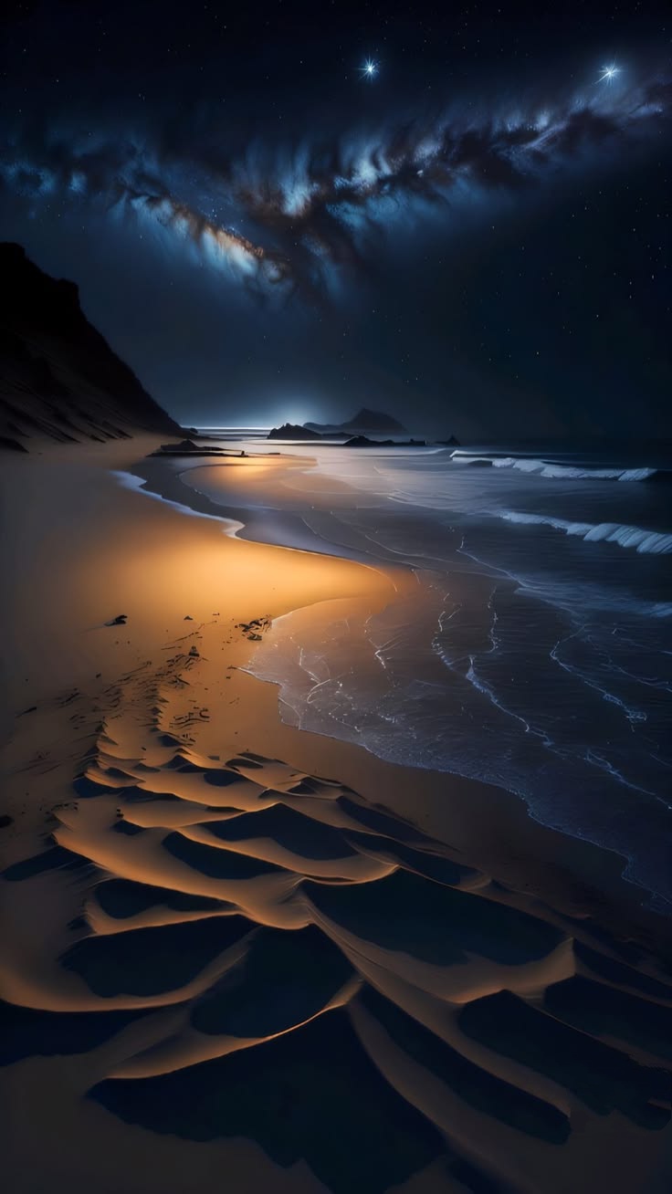 Glimmering sands like fallen stars,