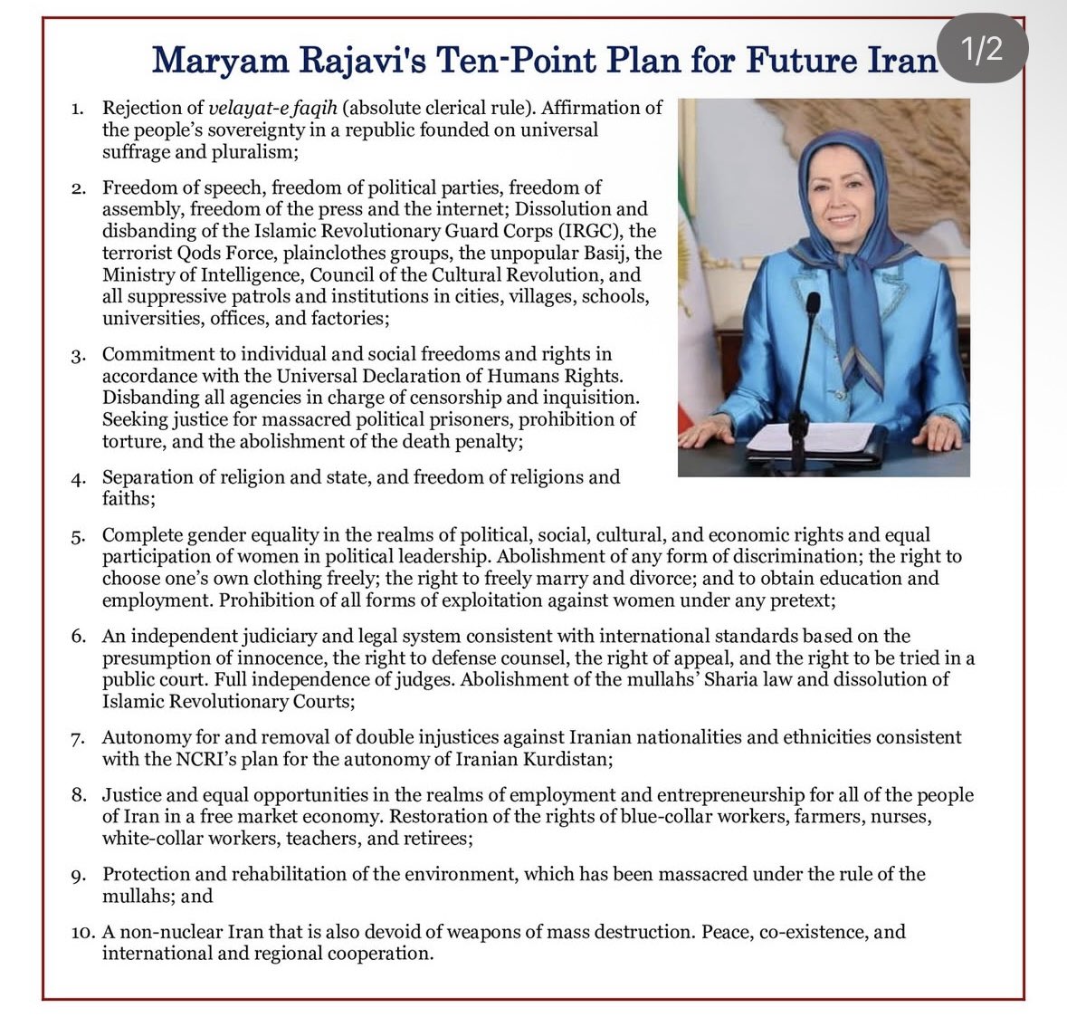 Supporting this plan means choosing a path defined by fairness, accountability and respect for every individual’s rights. #FreeIran10PointPlan #No2ShahNo2Mullahs