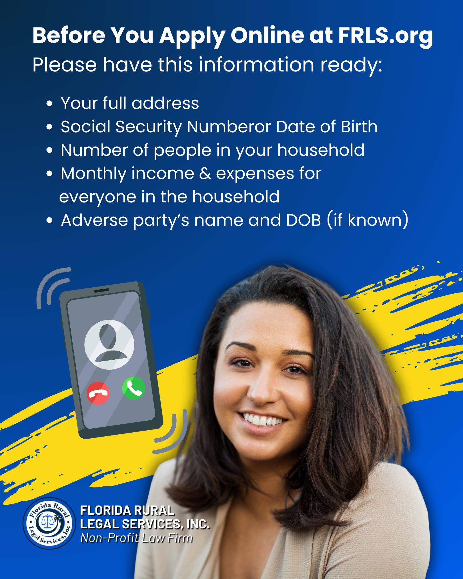 Before you begin your FRLS online intake application, please have a few important details ready.