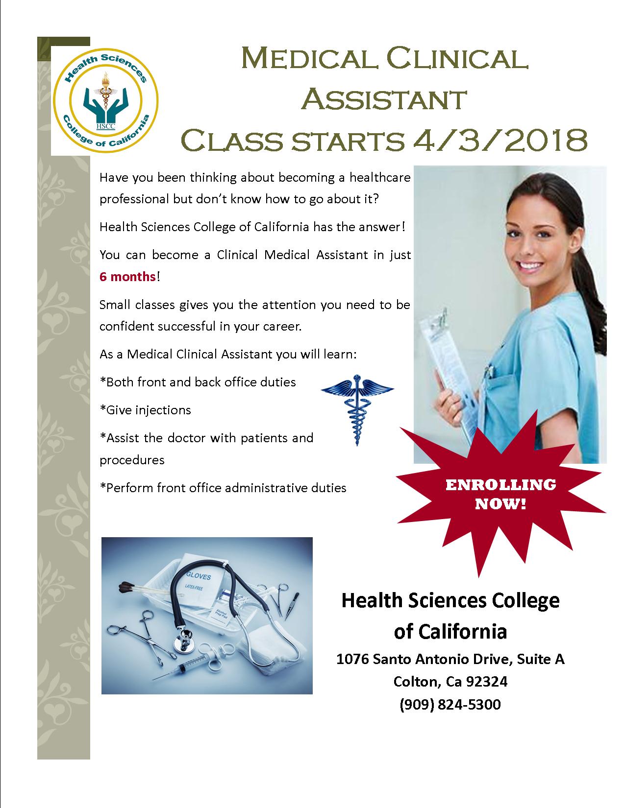 Train in both front and back office. Gain skills in taking vital signs, giving injections, drawing blood, assisting the doctor with patients along with learning all front office administrative duties. Call and enroll today (909) 824-5300