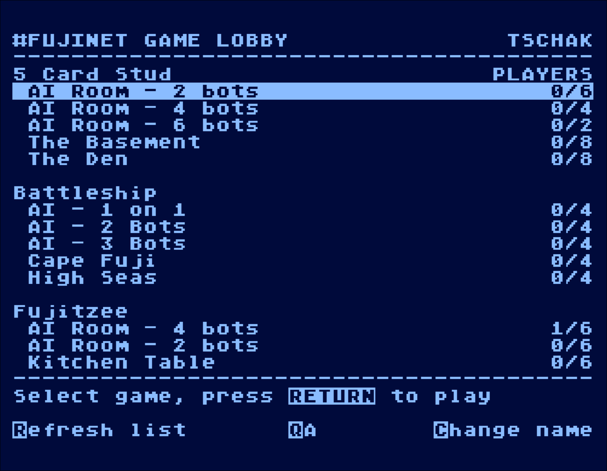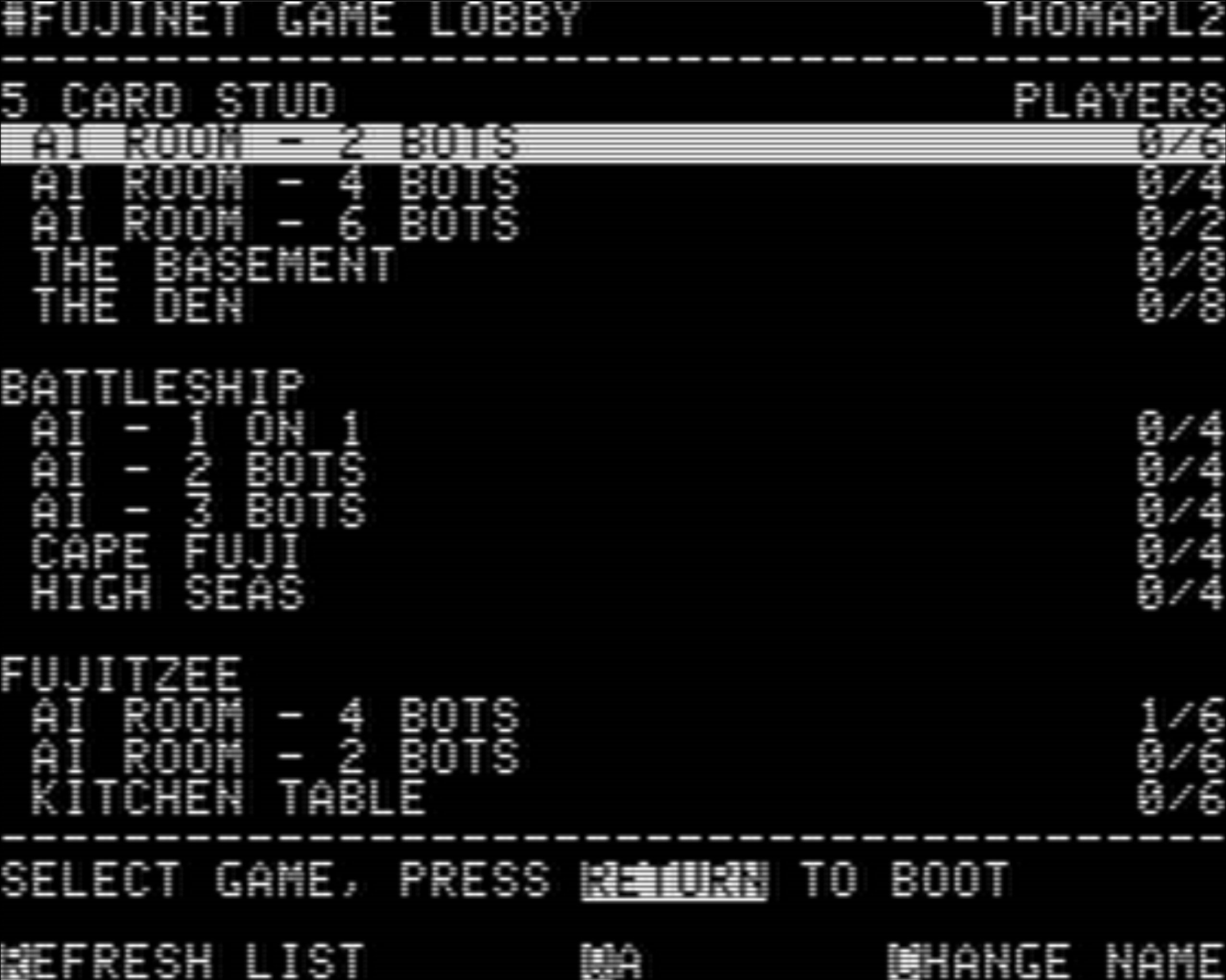 A reminder that there is a Game Lobby built into #FujiNet, offering access to cross-platform multi-player networked games! Press 'L' in CONFIG!
