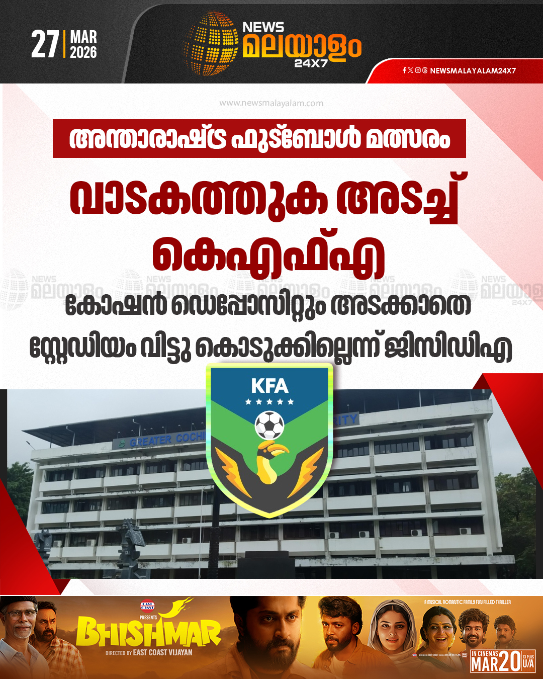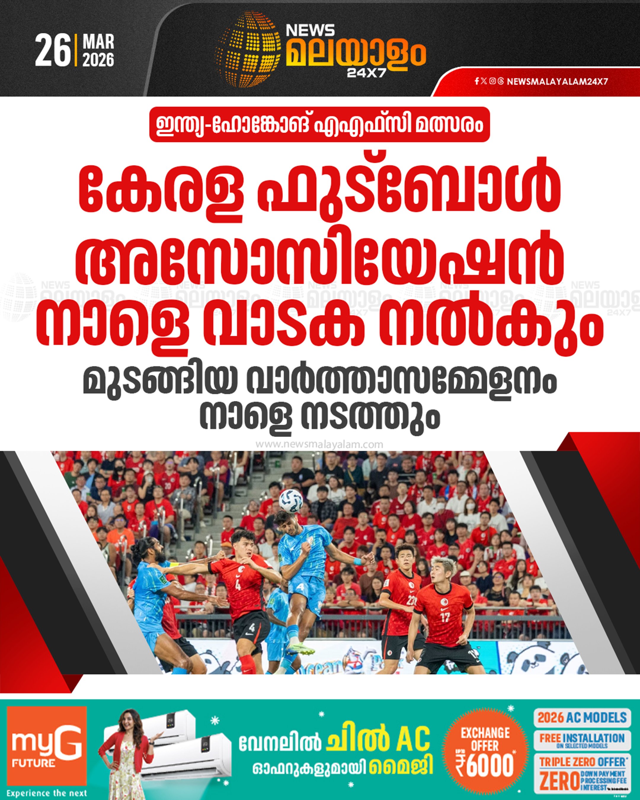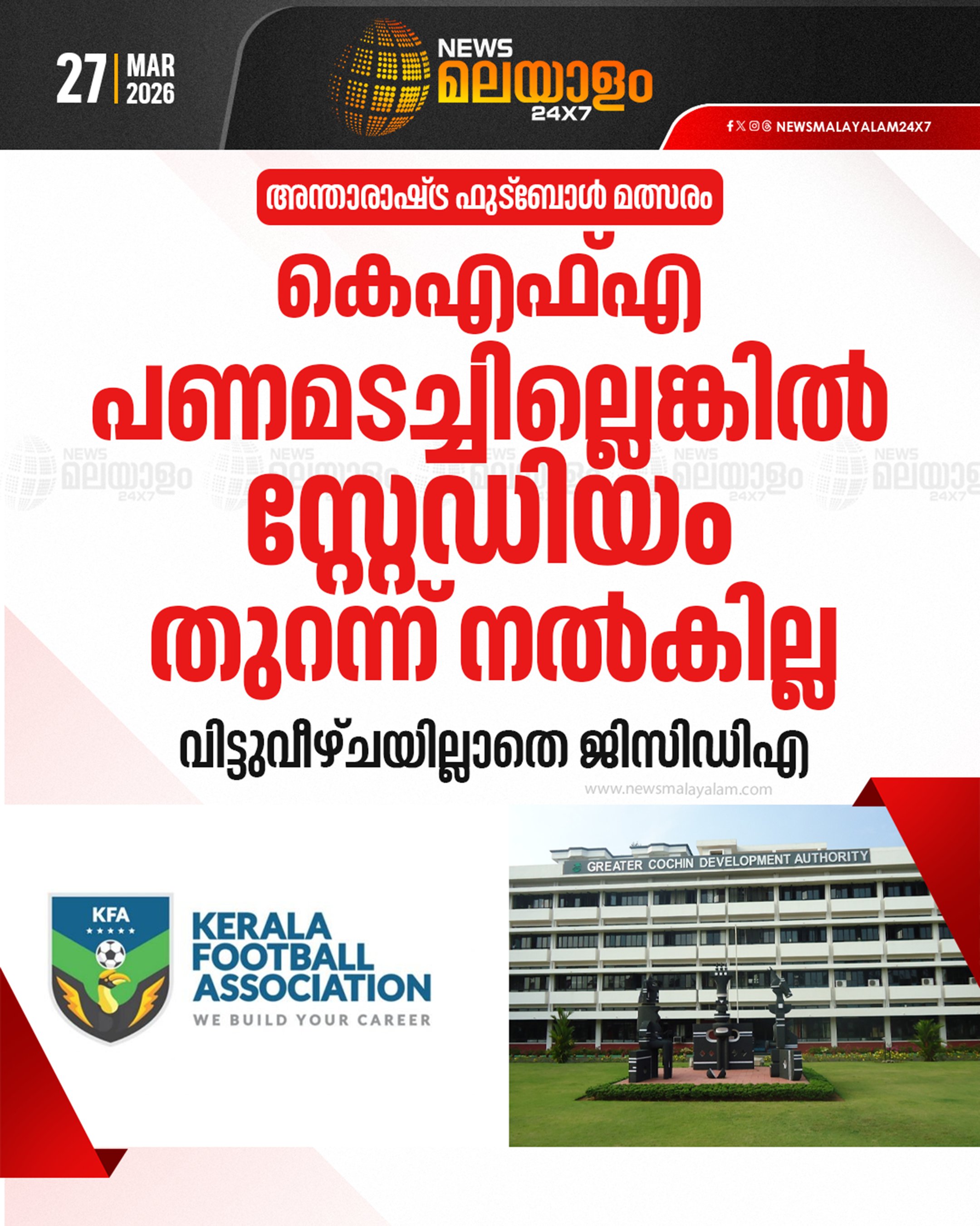 Kerala FA’s scheduled press meet featuring Indian Football Team players Ashique Kuruniyan, Sahal Abdul Samad, Bijoy Varghese, and head coach Khalid Jamil ahead of the AFC Asian Cup 2027 Qualifier has been cancelled, reportedly due to rent-related issues with GCDA.