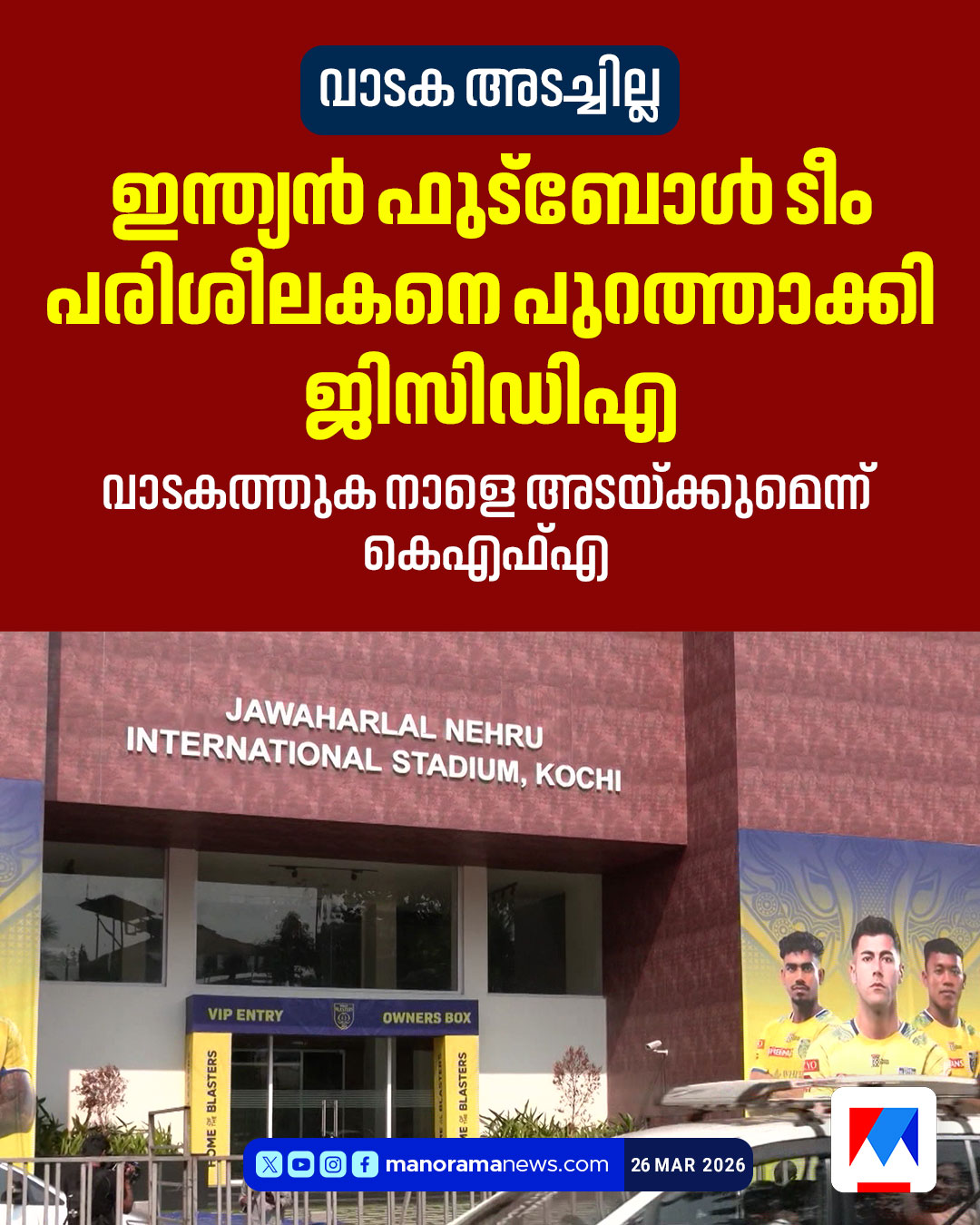 MAR 26: GCDA closed JLN stadium before Indian Football Team's press conference due to rent issues.❌