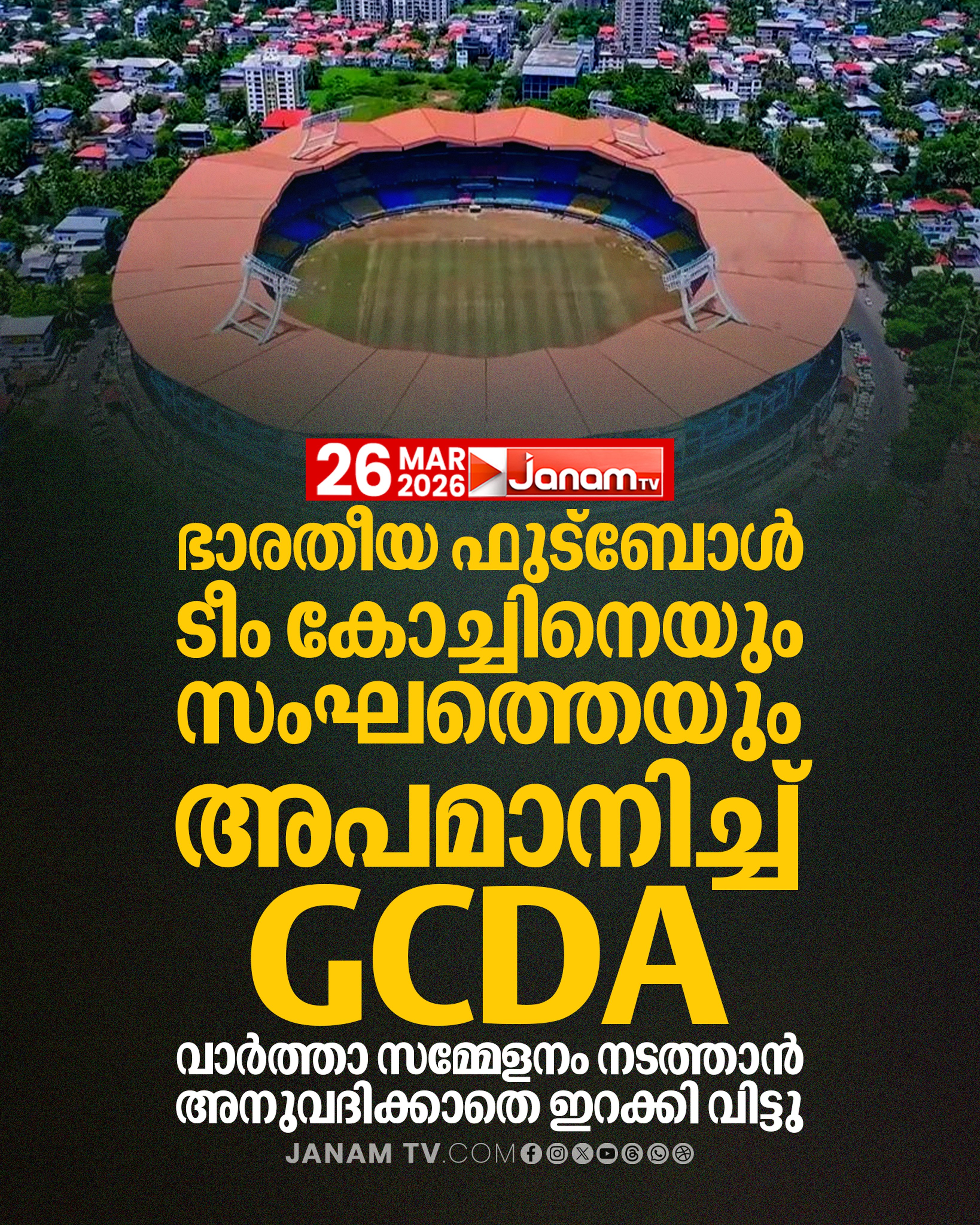 കൊച്ചി ജവഹർലാൽ നെഹ്റു സ്റ്റേഡിയത്തിൽ എത്തിയ ഭാരതീയ ഫുട്ബോൾ ടീം കോച്ചിനെയും സംഘത്തെയും വാർത്താ സമ്മേളനം നടത്താൻ അനുവദിക്കാതെ ഇറക്കി വിട്ട് GCDA