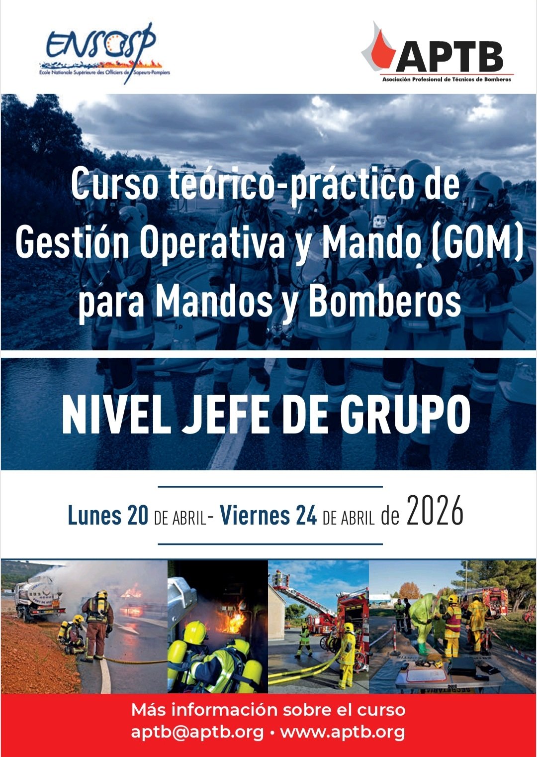 ÚLTIMA OPORTUNIDAD: esta semana cerramos la inscripción para #bomberos en el curso de #GOM que organizamos en @ENSOSP (Marsella, Francia) del 20 al 24 de abril. Si quieres informarte o inscribirte, contacta con nosotros en la web o el mail que aparece en el cartel. ¡Date prisa!