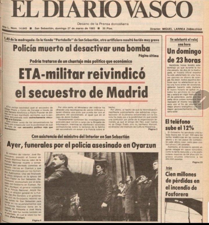 ✝️ El 27/03/1983, la banda terrorista #ETA asesinó en #SanSebastian al @policia zamorano ANIANO SUTIL PELAYO cuando se disponía a desactivar una bomba con mecanismo trampa colocada en el B° de #Gros e hiriendo a su compañero J.M.M.A.