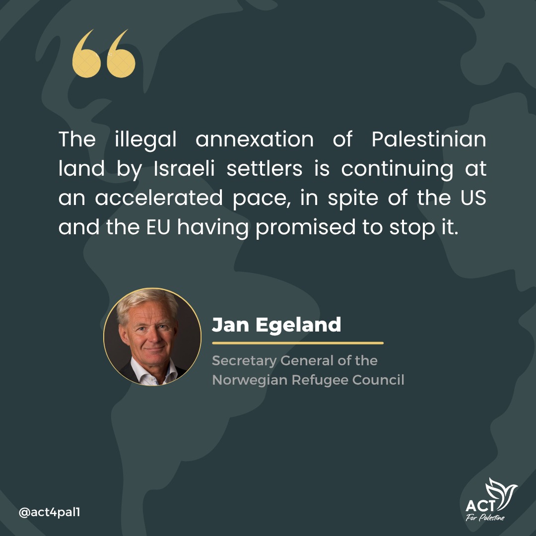 "The illegal #annexation of Palestinian land by Israeli settlers is continuing at an accelerated pace, in spite of the US and the EU having promised to stop it."