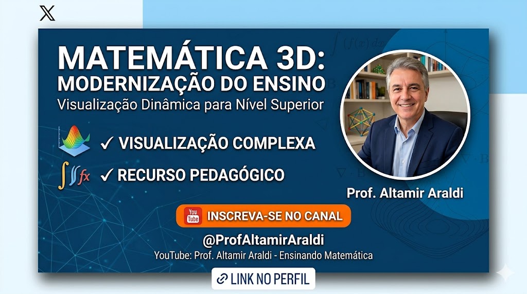 Matemática em 3D: do abstrato ao visível! 📐✨ Transformo conceitos de Cálculo e Geometria do Ensino Superior em modelos dinâmicos para alunos e professores.