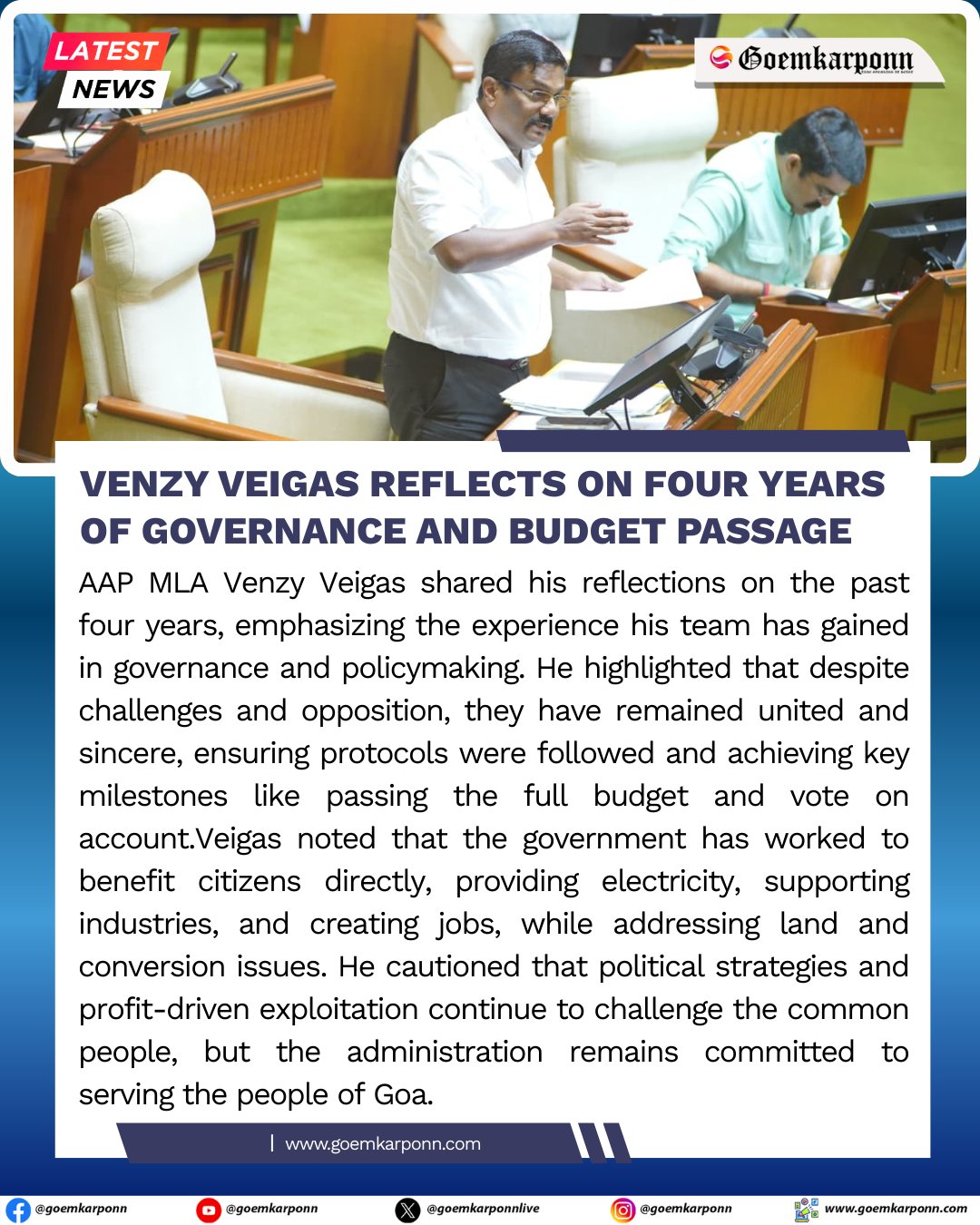 Goemkarponn @goemkarponnlive · Mar 16 Venzy Veigas Reflects on Four Years of Governance and Budget Passage #GoaNews #VenzyVeigas #GoaBudget #GovernanceExperience #PublicService 13
