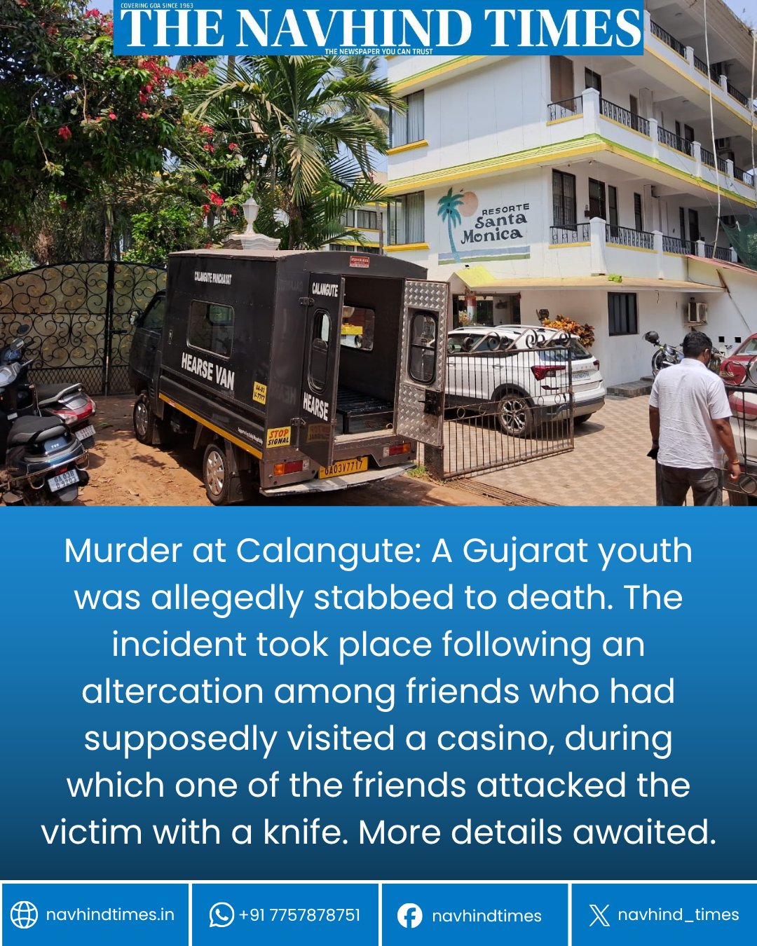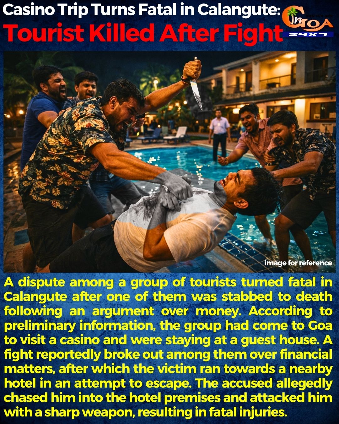 Goa Crime News : कलंगुट में मर्डर—कसीनो विवाद में पर्यटक की चाकू मारकर हत्या। मामले में आगे की जानकारी का इंतजार....