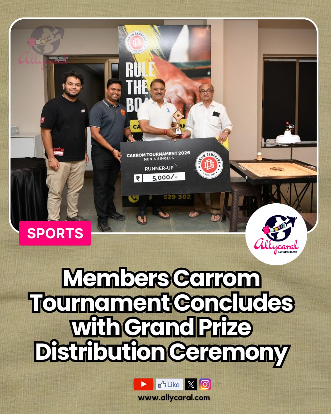 Allycaral @allycaralgoa · Mar 4 A memorable finish to the Members Carrom Tournament with a grand prize distribution ceremony celebrating skill, focus and true sportsmanship. Read: allycaral.com/2026/03/04/mem… #CarromTournament #GoaSports #PrizeDistribution #CommunitySpirit #SportsNews 4