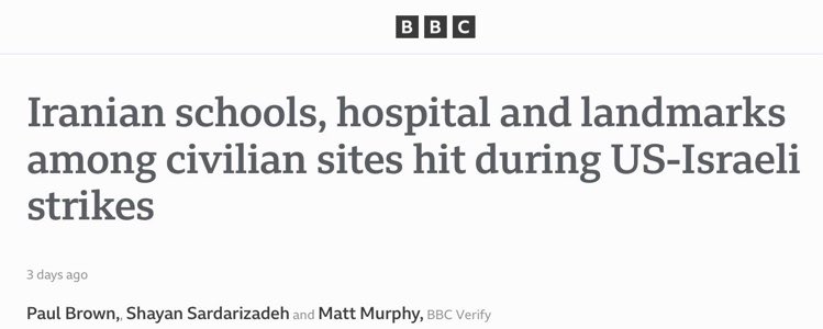 @BahmanNassiri What @TuckerCarlson is supporting are the Iranian PEOPLE, while the '#Goodguys' bomb them back into the stone-age, after killing 160+ children, 'accidentally'!