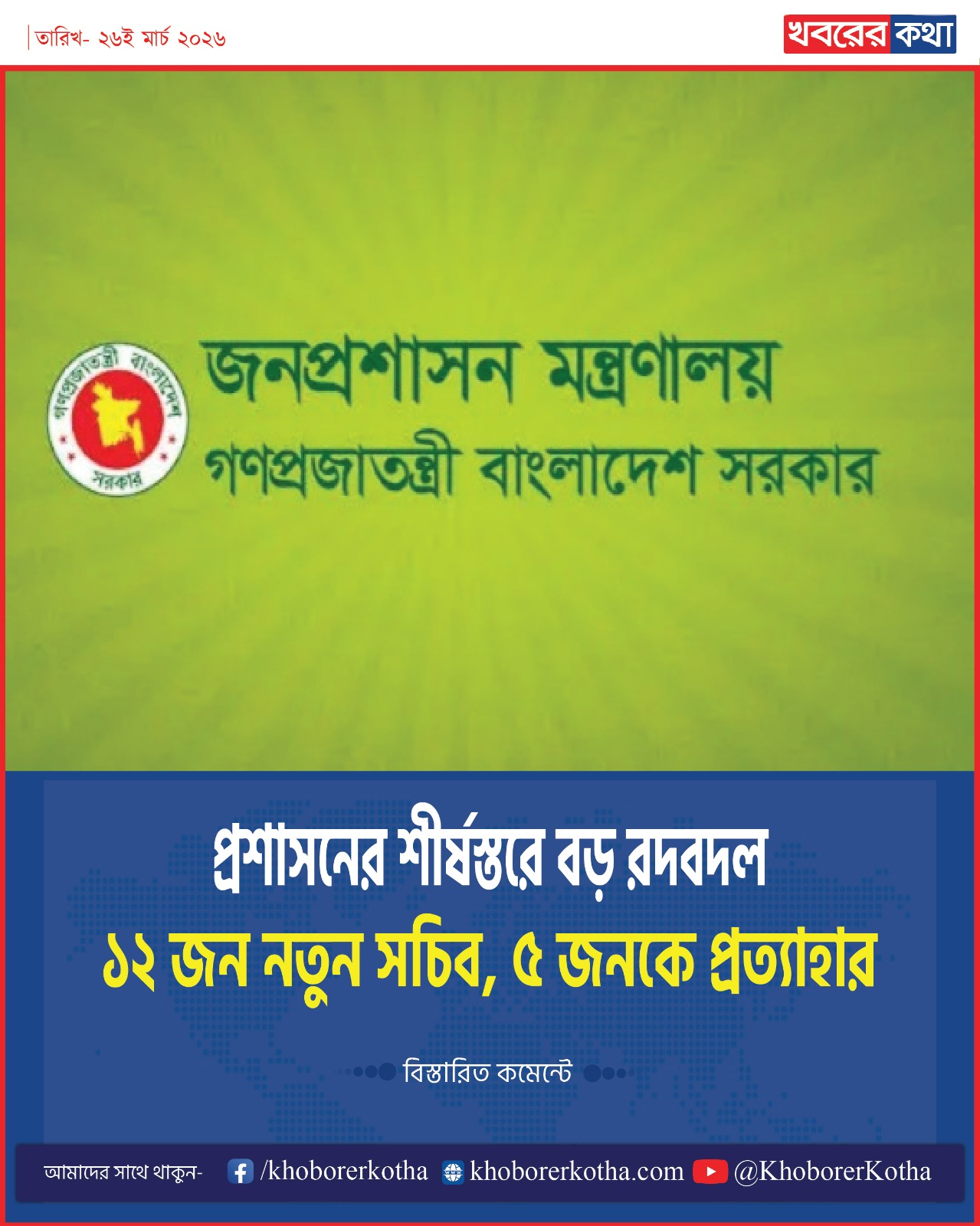 #khoborerkotha #BangladeshNews #GovernmentReforms #SecretaryAppointments #MinistryReshuffle