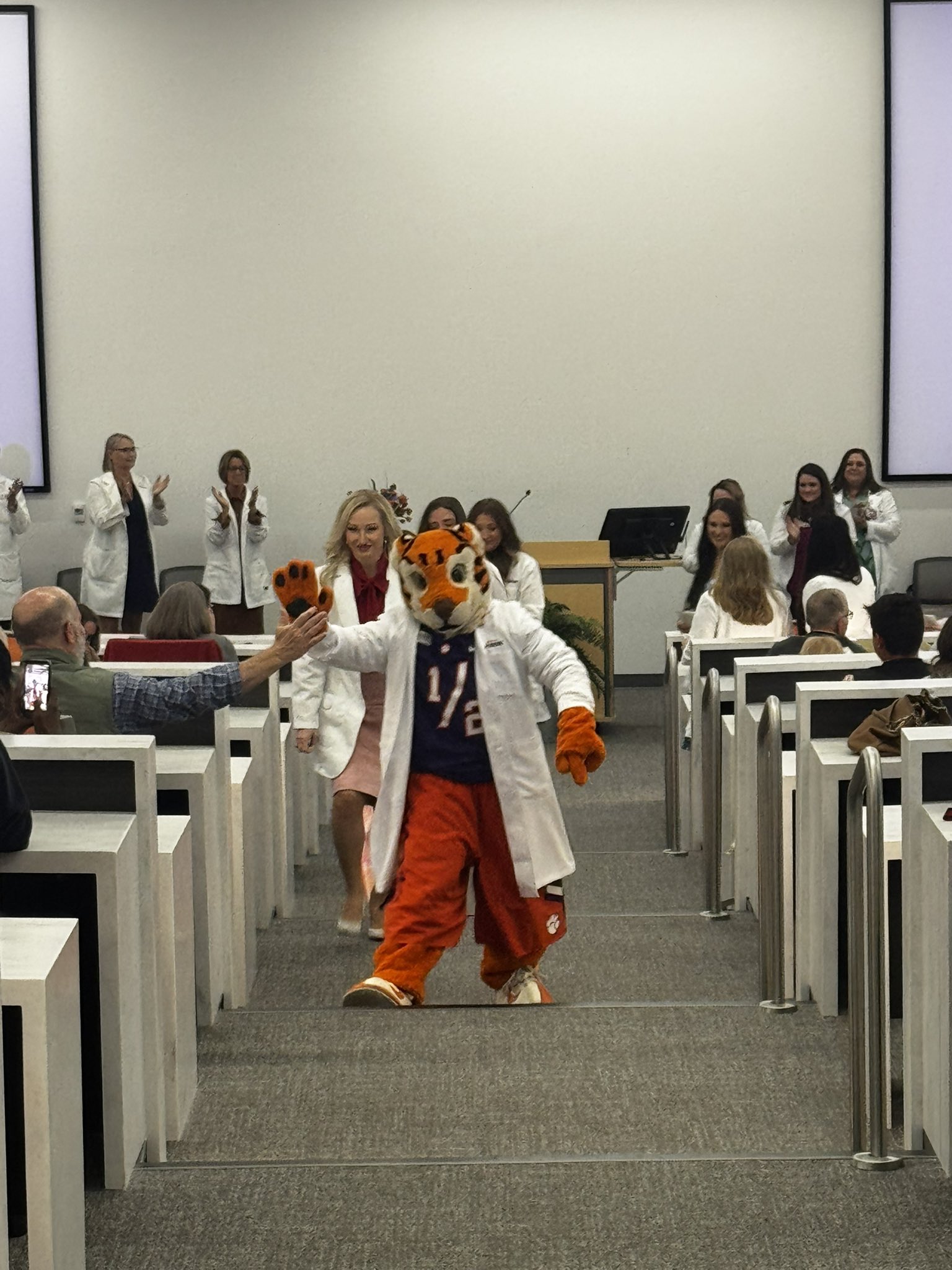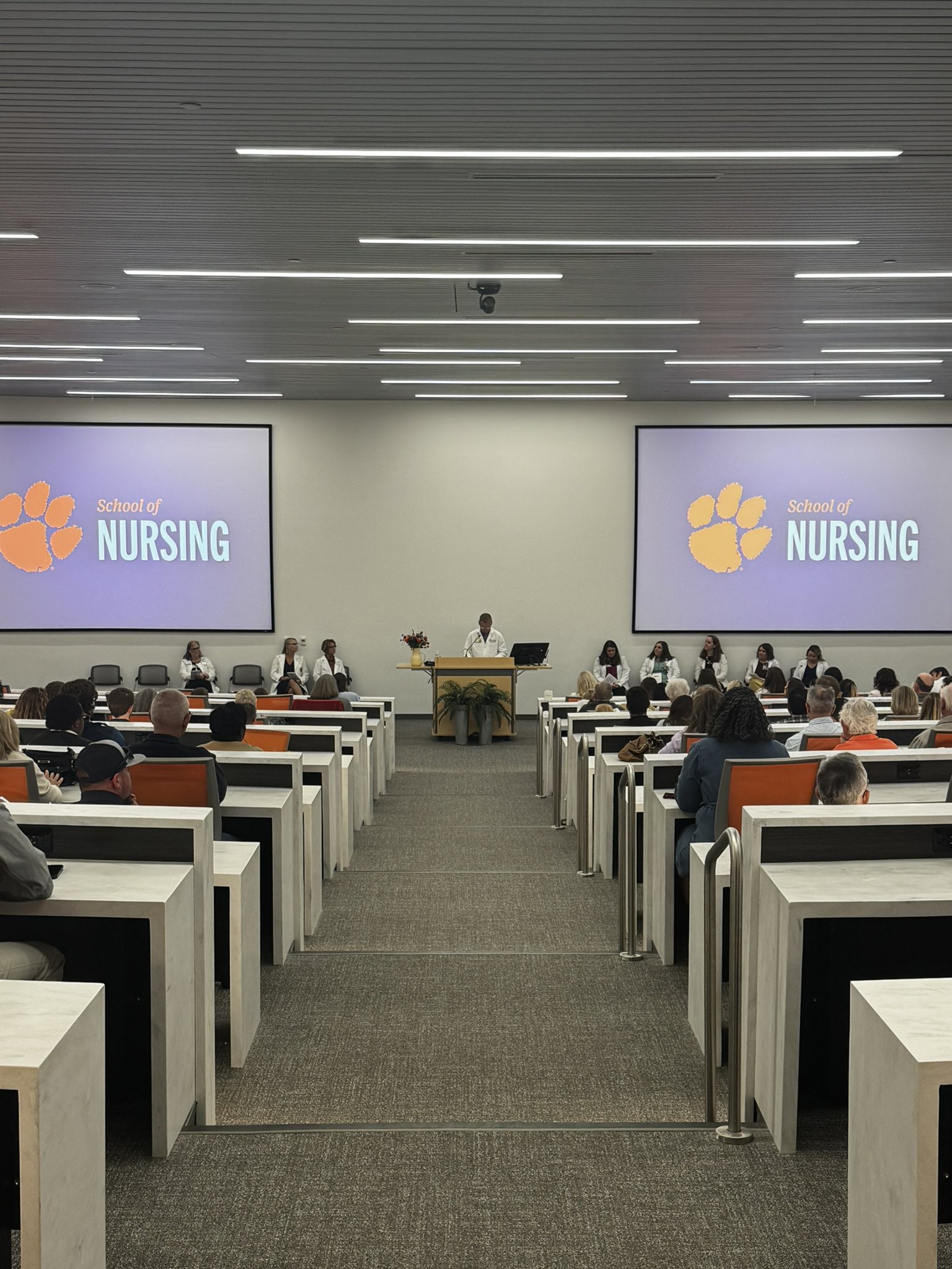 Jason R. Thrift, PhD, RN, CHSE, NI-BC @PhdThrift · Mar 13 A fun evening celebrating the graduates in the White Coat Ceremony. One of them doing great work in Health Assessment lab! Go make us proud. #whitecoatceremony #graduatestudent #cunursing #clemsonnursing 39
