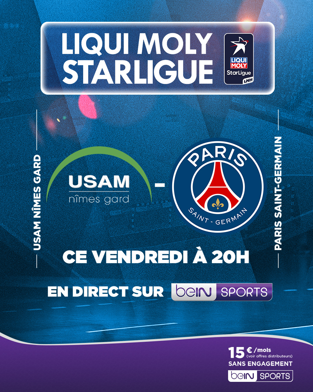 beIN SPORTS @beinsports_FR · 1d 🤾♂️ Vivez la #LiquiMolyStarLigue sur nos antennes ! 🤩 Ne manquez pas @USAMNIMESGARD 🆚 @psghand ce vendredi à 20h sur beIN SPORTS 1 ! #HandAction #LMSlKJ 1 5 5.4K