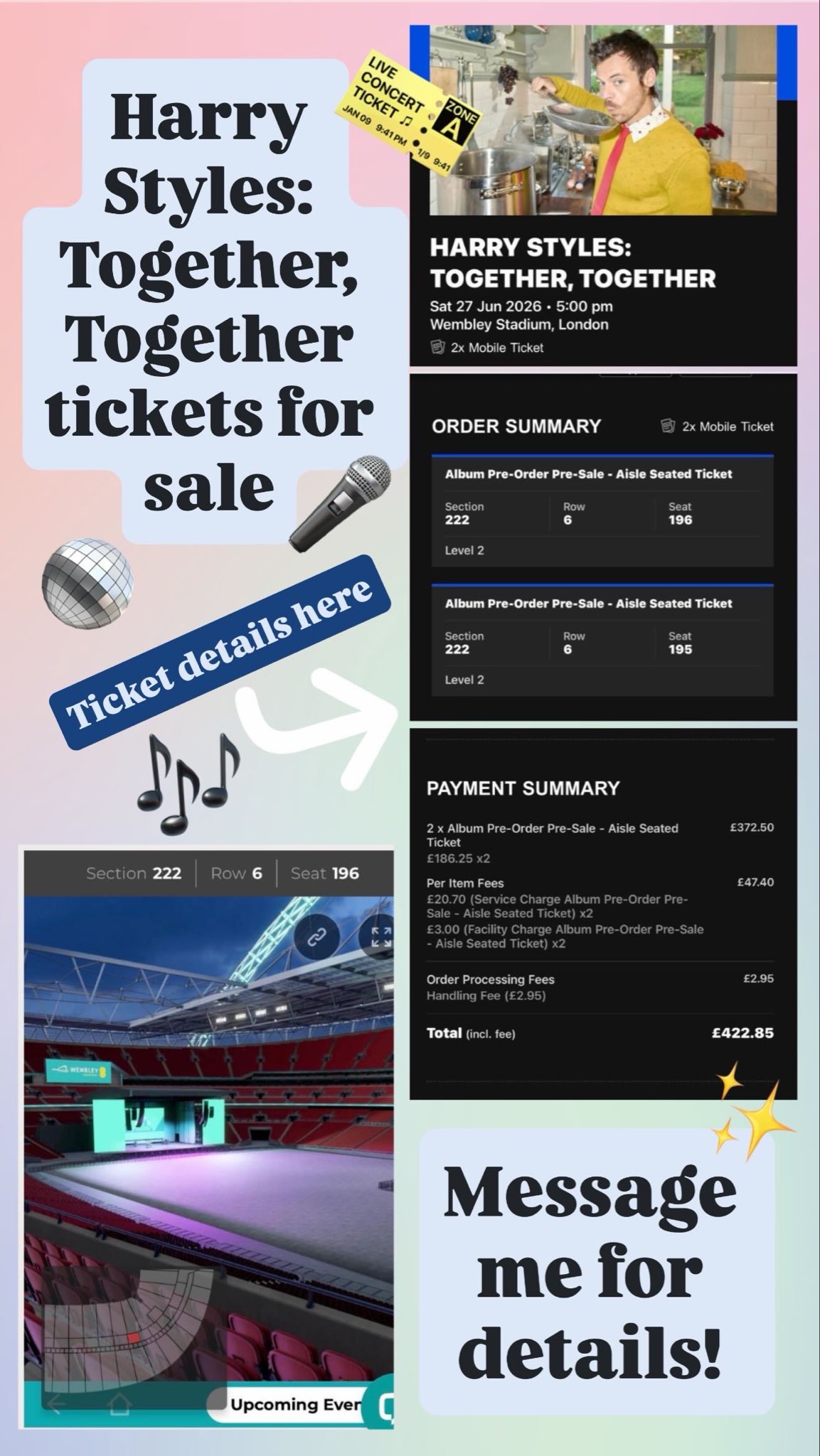 I’ve got x2 Disco PIT tickets to Harry Styles concert in AMSTERDAM at Johan Cruijff Arena 16th May 2026
