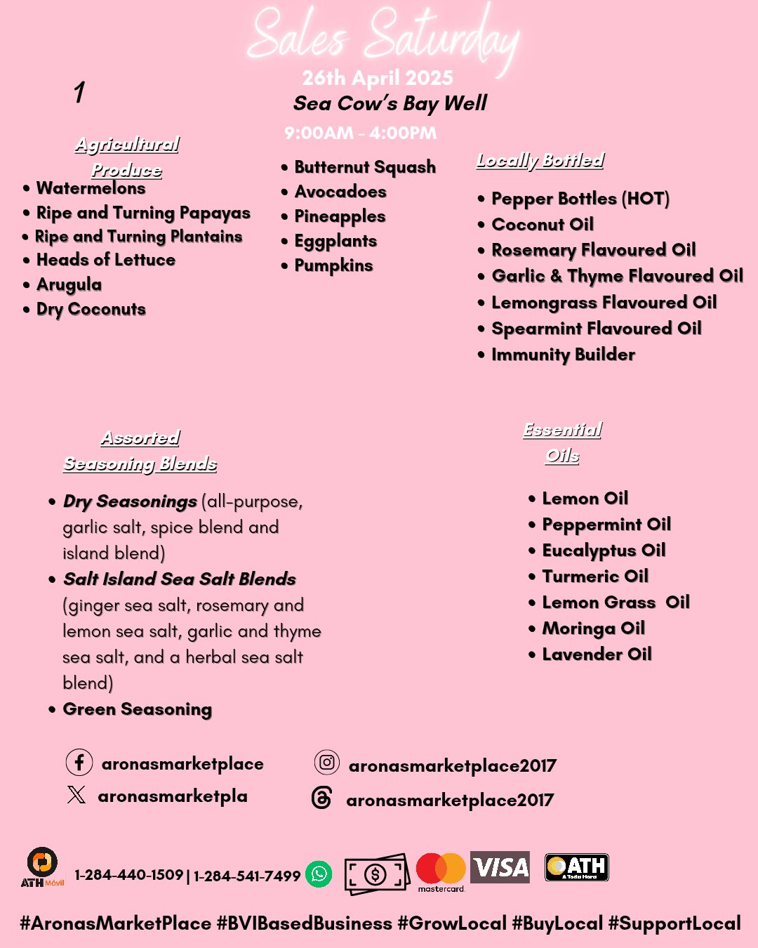 Arona's Market Place @aronasmarketpla · Apr 26, 2025 Hello 👋🏽 World 🌎 It's Sales Saturday! ✨️ 🤗 Shop your local produce at Arona's Market Place today!* #HelloApril #AronasMarketPlace #SalesSaturday #GrowLocal #BuyLocal #SupportLocal #BVIBasedBusinK6o1 47