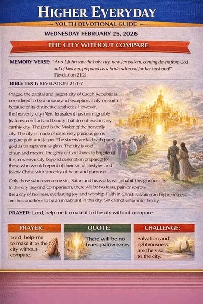 Queen Esther Favour @QueenEsthe74196 · Feb 25 #HigherEveryday #DailyDevotional #Youths #Evangelism #TheHeavenlyCity #February25th2026