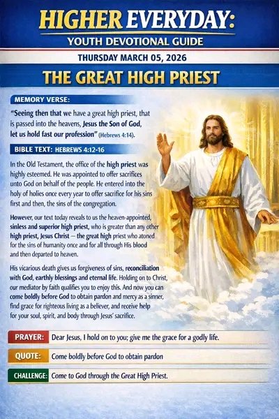 Queen Esther Favour @QueenEsthe74196 · Mar 5 #HigherEveryday #DailyDevotional #Youths #Evangelism #theGreatHighPriest #March5th2026