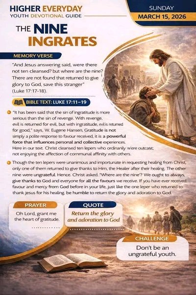 Queen Esther Favour @QueenEsthe74196 · Mar 15 #HIGHEREVERYDAY #DAILYDEVOTIONAL #YOUTHS #EVANGELISM #INGRATES #GRATITUDE #MARCH15TH2026 1